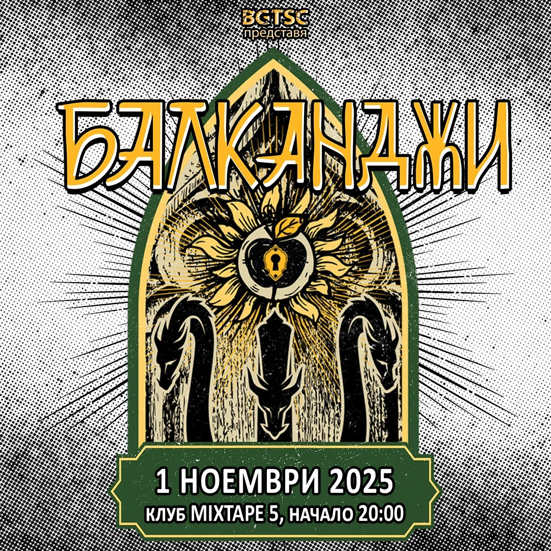 Концертът на БАЛКАНДЖИ е тази събота, 1 ноември, Денят на народните будители и ще е отново в столичния клуб Mixtape 5. Вратите на клуба ще отворят за публика в 19:00 часа, а групата ще излезе за двучасов концерт на сцената в 20:00 часа. Група БАЛКАНДЖИ изпълнява авторски песни, основани на българския фолклор, като умело го преплита с рок и метъл елементи. Групата не изпълнява възрожденски песни, но темите за змейове, самодиви, любов, бит и народни герои са неразделна част от тяхното творчество.