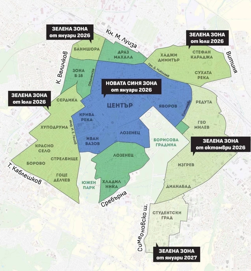 Новината, че зоните за платено паркиране в София - синя и зелена, се разширяват и поскъпват, доведе до емоционално цунами в социалните мрежи. Вече е решено: в различни етапи на 2026 г. нови софийски квартали ще станат зона и там паркирането ще се заплаща. През 2027 г. пък дори Студентски град - този район, често шеговито наричан "Град на греха" и "Село на разврата", също ще се сдобие с платени паркоместа.