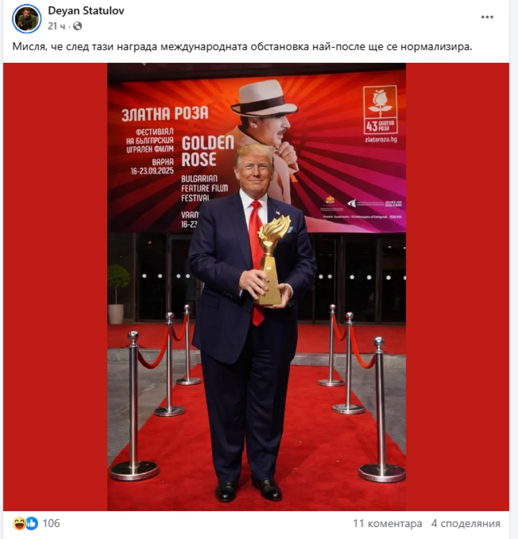 От българска страна се включи кинорежисьорът Деян Статулов, който му подари една "Златна роза":