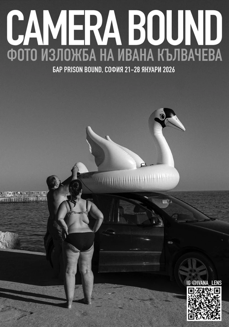 Можете да разгледате изложбата "Camera Bound" на Ивана Кълвачева в бар Prison Bound в София до 28 януари. И най-искрено ви съветвам да го направите, за да усетите сами силата на момента, мощта на таланта на Ивана и микро-историите, които се разказват във всеки неин кадър.