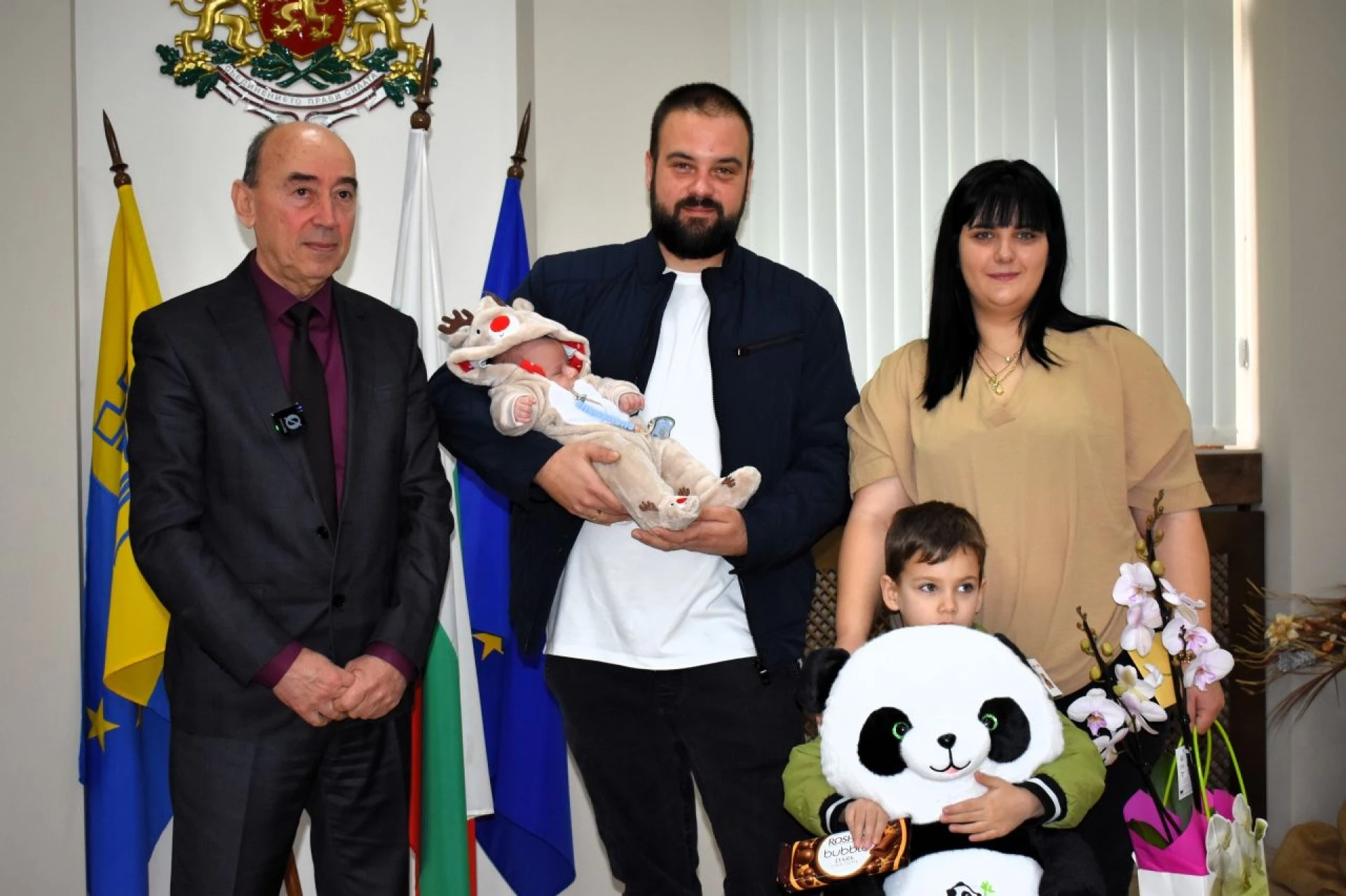 Даниел - първото бебе на Асеновград за 2026 г. – бе посрещнат и орисан от зам.-кмета на общината Петър Петров. От името на кмета д-р Христо Грудев, той пожела на семейството да бъдат здрави, сплотени, единни, щастливи и дълги години да се радват на това ценно съкровище, с което ги е дарила съдбата. Даниел е втора рожба за Теодора и Димитър. Първото им дете също е момче – казва се Стоян и е на 5 г.