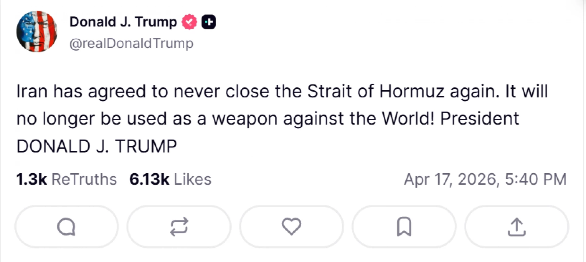 "Иран се съгласи никога повече да не затваря Ормузкия проток. Той вече няма да бъде използван като оръжие срещу света!" Това написа американският президент Доналд Тръмп в своята социална мрежа Truth Social. Разбира се, въпреки възторга на Тръмп дали и доколко Иран ще спази това обещание, ако изобщо е вярно, че се е ангажирал с подобно обещание, е съвсем отделен въпрос, особено след като сега Техеран разбра колко е лесно да приложи това мощно оръжие, за да оказва натиск и да получи желаното. Припомнете си: Капанът в Ормузкия проток: Иран намери по-добро оръжие от ядрената бомба