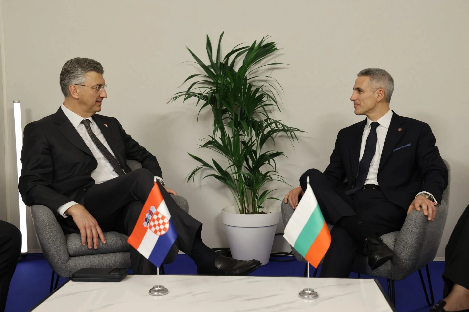 България се стреми към ускоряване на дигиталната трансформация във всички сектори и отключване на потенциала на нововъзникващите технологии, отбеляза още министър-председателят Андрей Гюров по време на разговора си с Пленкович. Двамата обсъдиха възможностите за задълбочаване на двустранното сътрудничество в области като дигиталната трансформация, зелените технологии и изкуствения интелект.