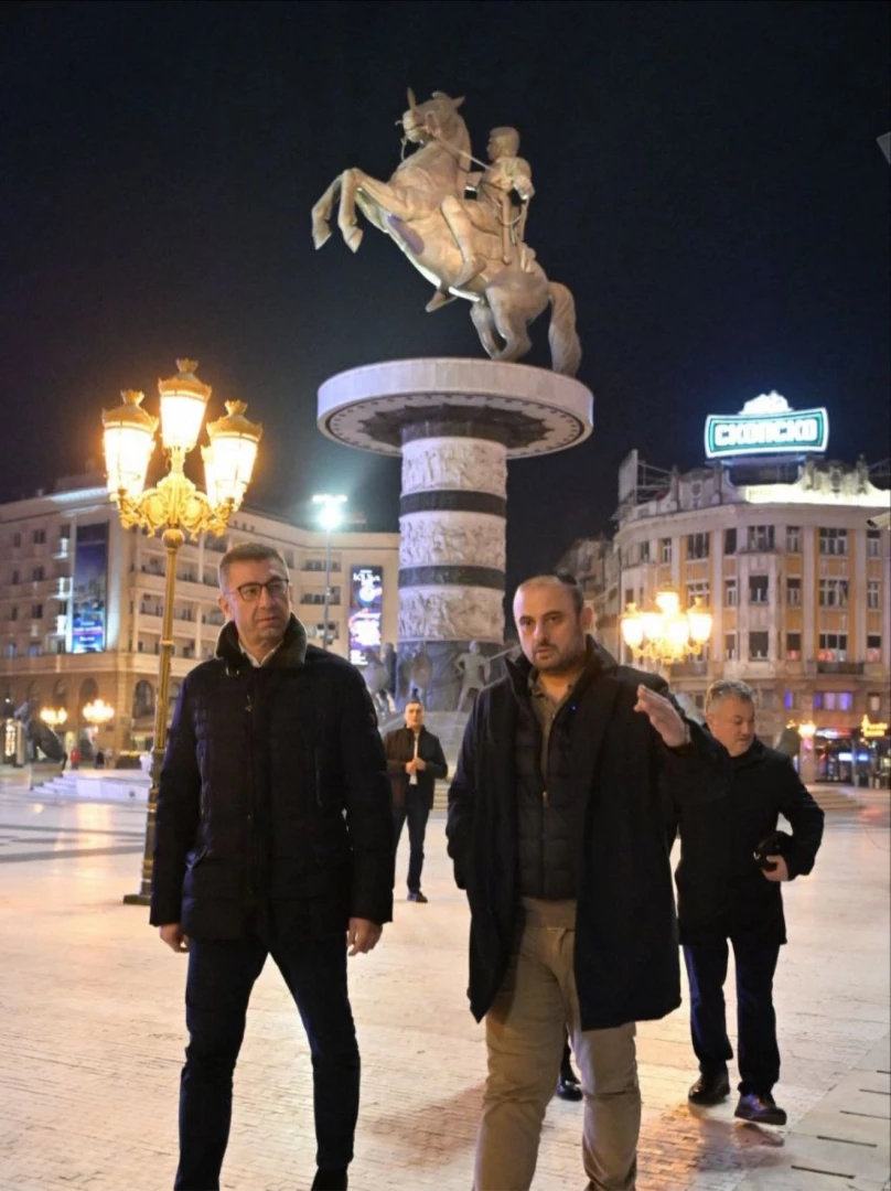 Македонският премиер Христиан Мицковски и новият кмет на Скопие в лицето на Орче Георгиевски направиха нощна обиколка на македонската столица, съобщи press24.mk. Обиколката е следствие от повторното почистване с вода на центъра на Скопие и насипа на Вардар през уикенда. "Вечерна обиколка на площада и част от Градския парк. Всичко беше чисто и подредено, както подобава на нашето Скопие!", написа Мицкоски в платформата Х.