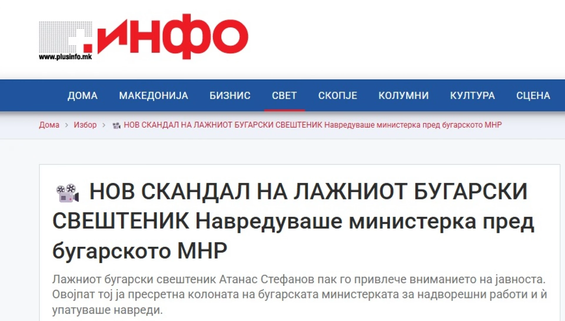 "Софийската митрополия обяви по-рано, че Стефанов не е част от духовенството, нито му е позволено да носи свещенически одежди и кръст", пише "Либертас".