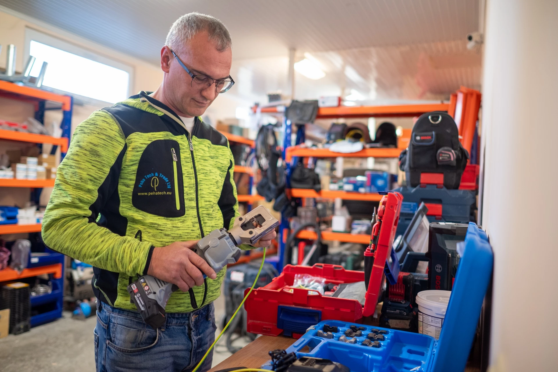 Сред най-важните придобивки е професионална машина за дълбоко почистване на фотоволтаични панели чрез обратна осмоза – технология, която повишава ефективността на системите и отваря ново направление в бизнеса: поддръжка, наред с изграждането на инсталации. Освен това са закупени фотоволтаичен инвертор и батерии с общ капацитет, които осигуряват автономност, защита от прекъсвания на електрозахранването и значително намаляване на разходите за ток.