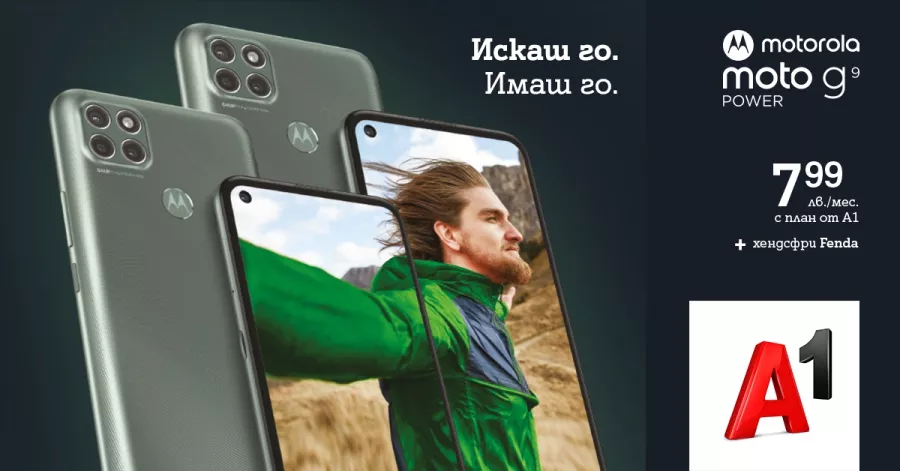 А1 продължава да разширява продуктовото си портфолио в средния ценови клас, добавяйки нов модел от тази седмица - Motorola Moto G9 Power. Смартфонът се отличава не само с достъпни цени, но и с най-издръжливата батерия, слагана някога в устройство на производителя – 6000 mAh. Той вече може да бъде закупен както онлайн на А1.bg, така и в магазините на телекома в страната.
