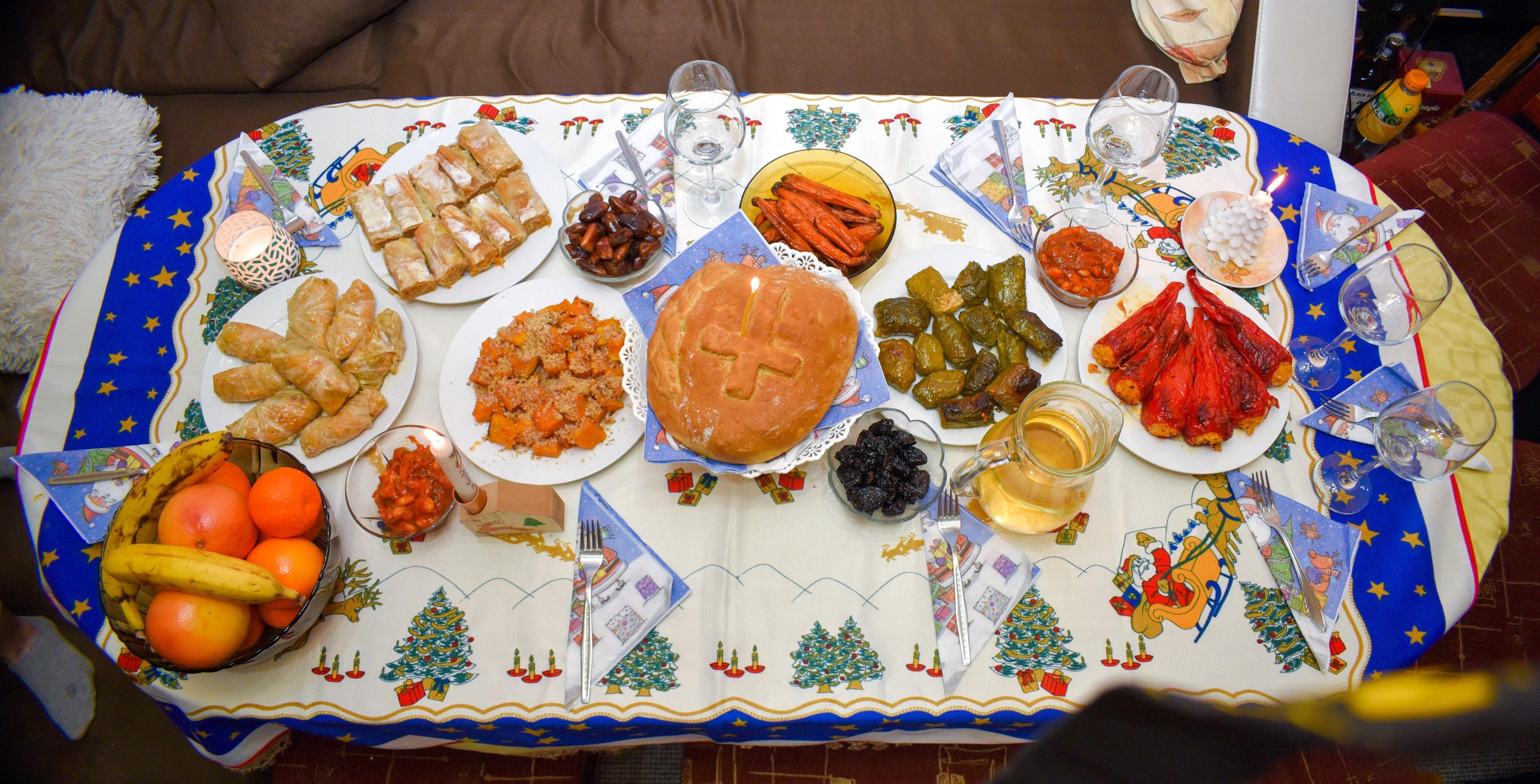 Според поверието човек трябва да опита от всичко, което е на масата, за да има изобилие в дома през новата година. Вечерта трапезата не се вдига, а се оставя за мъртвите.
