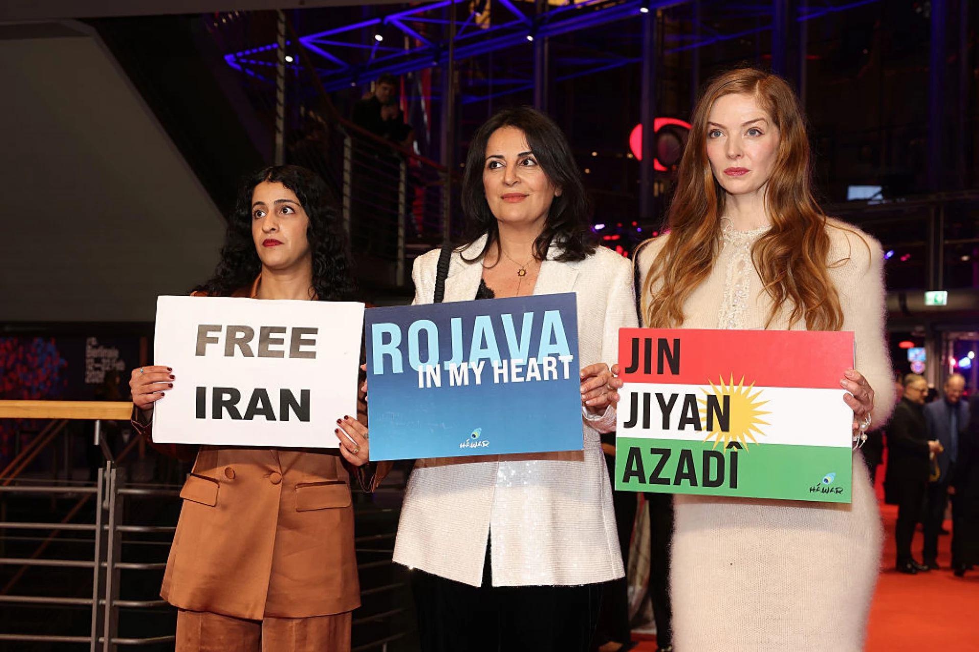 Актьори като Бела Рамзи, Нийл Патрик Харис, Даниел Брюл и Ларс Айдингер се събраха под дъжда на червения килим преди церемонията. Няколко от присъстващите използваха камерите, за да направят политически изявления, като една група държеше плакати с надпис „Внимавайте, фашисти! Ние сме повече!“, а друга група издигна лозунги в подкрепа на иранския народ, отбелязва Ройтерс.