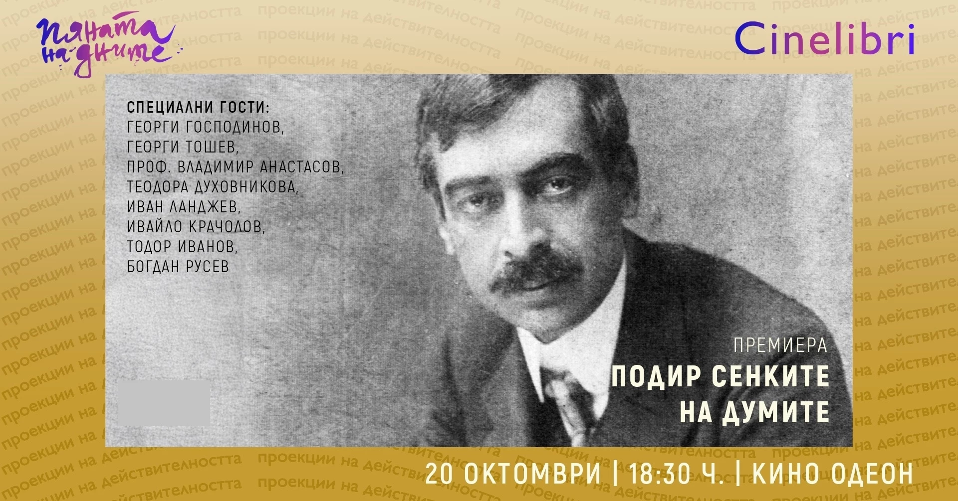 Програмата включва и документалния филм на Ема Константинова "Подир сенките на думите", който търси отговор на въпроса дали образът на един от най-нежните български лирици - Пейо Яворов, е митологизиран. Филмът се вглежда в интимния свят на поета, за да се опита да разбере пламенната крайност на любовта му, патоса му на революционер и родолюбец, психологическата дълбочина и екзистенциалната проблематичност на поетичните му текстове. В това проникновено и вълнуващо колективно изследване участие ще вземат проф. Владимир Анастасов, Теодора Духовникова, Георги Господинов, Георги Тошев, Иван Ланджев, Ивайло Крачолов и председателят на фондация "Яворов" Тодор Иванов. Тъй като билетите за събитието на 20 октомври вече са изчерпани, организаторите обявяват две допълнителни прожекции на филма в Casa Libri - на 27 октомври от 18:30 ч. и на 1 ноември от 19:30 ч.