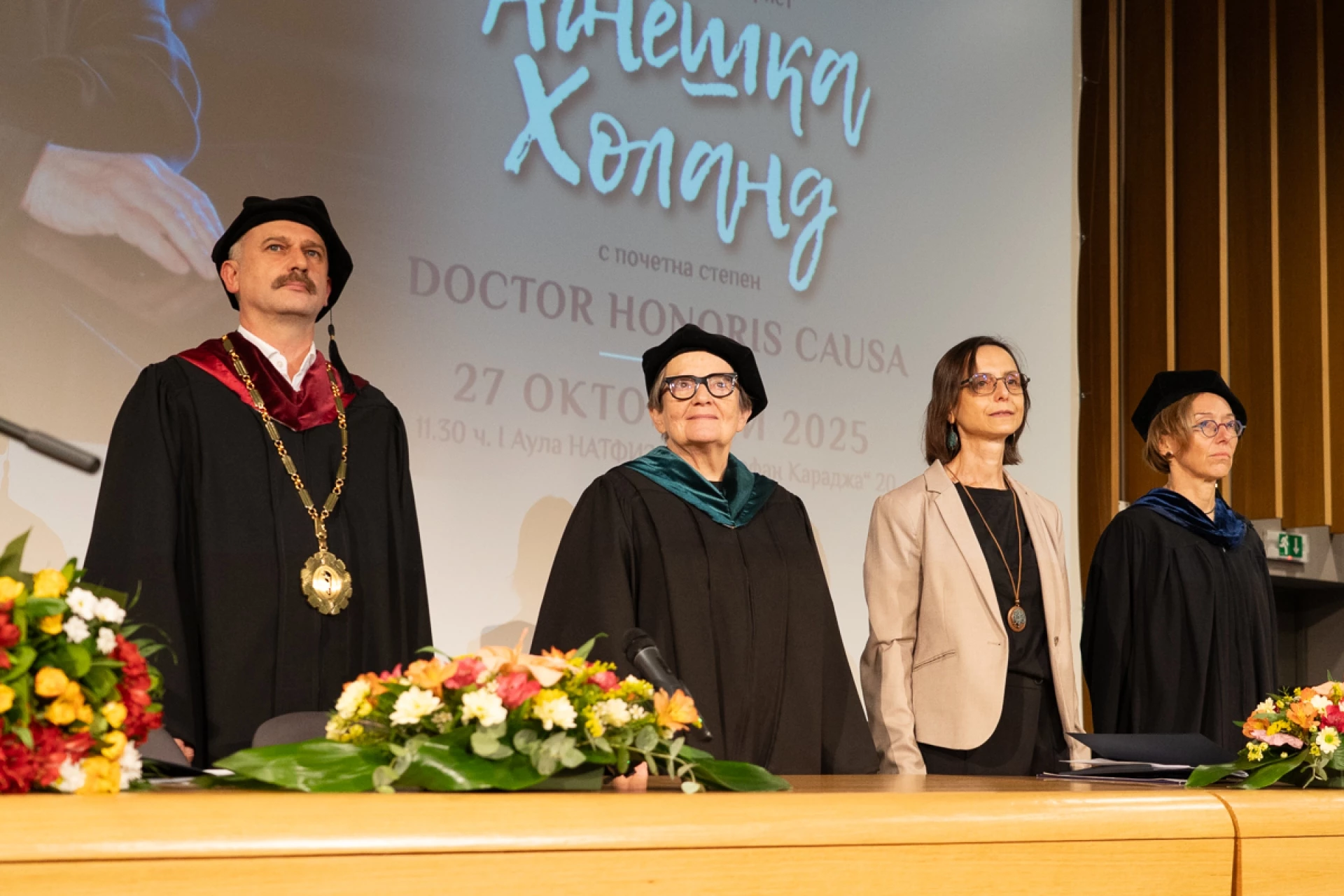 Световноизвестният полски режисьор, сценарист, продуцент и актриса Агнешка Холанд бе удостоена с почетното звание Doctor Honoris Causa на Националната академия за театрално и филмово изкуство "Кръстьо Сарафов" за нейния изключителен принос в развитието на съвременното киноизкуство. Церемонията по присъждането на почетната степен се състоя в Аулата на НАТФИЗ по време на открит тържествен Академичен съвет, събрал представители на академичната и културната общност, членове на настоятелството, преподаватели, студенти и журналисти.