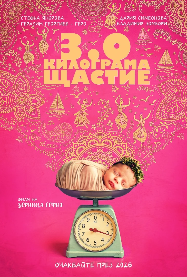 "3.0 килограма щастие" предстои да излезе на голям екран в началото на 2026 година. В една от главните роли отново ще видим забележителната Дария Симеонова, която този път е в ролята на антагониста в историята. На прекрасната Стефка Янорова е поверена многопластовата главна роля, а редом до тях ще застанат Владимир Зомбори и Герасим Георгиев – Геро, а сцените са оркестрирани в увличащата музика на Михаил Йосифов.