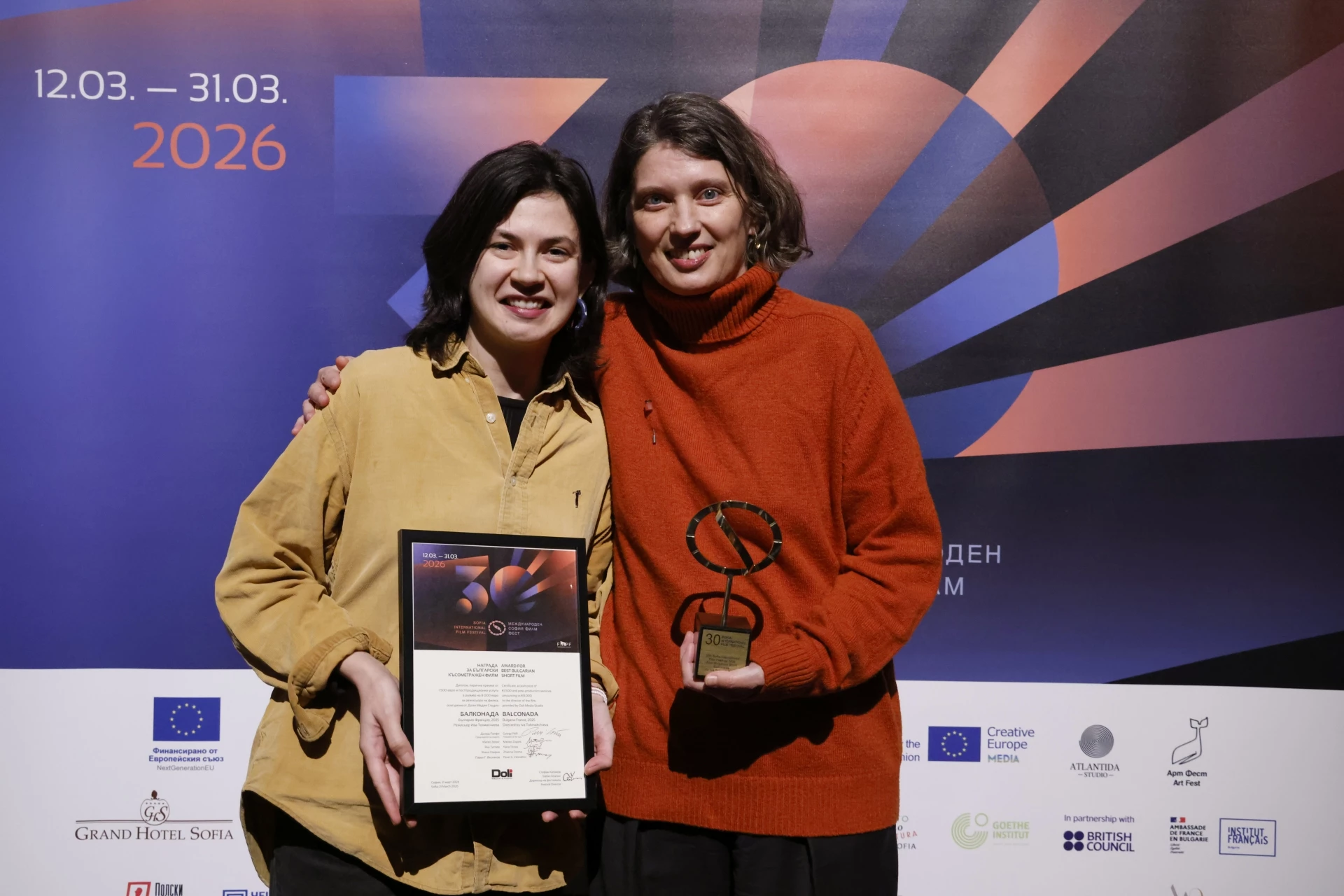 НАГРАДАТА ЗА БЪЛГАРСКИ КЪСОМЕТРАЖЕН ФИЛМ на стойност 9500 евро (1500 евро парична премия и 8000 евро в постпродукционни услуги), бе присъдена на филма "Балконада" (България-Франция) на режисьорката Ива Токмакчиева.