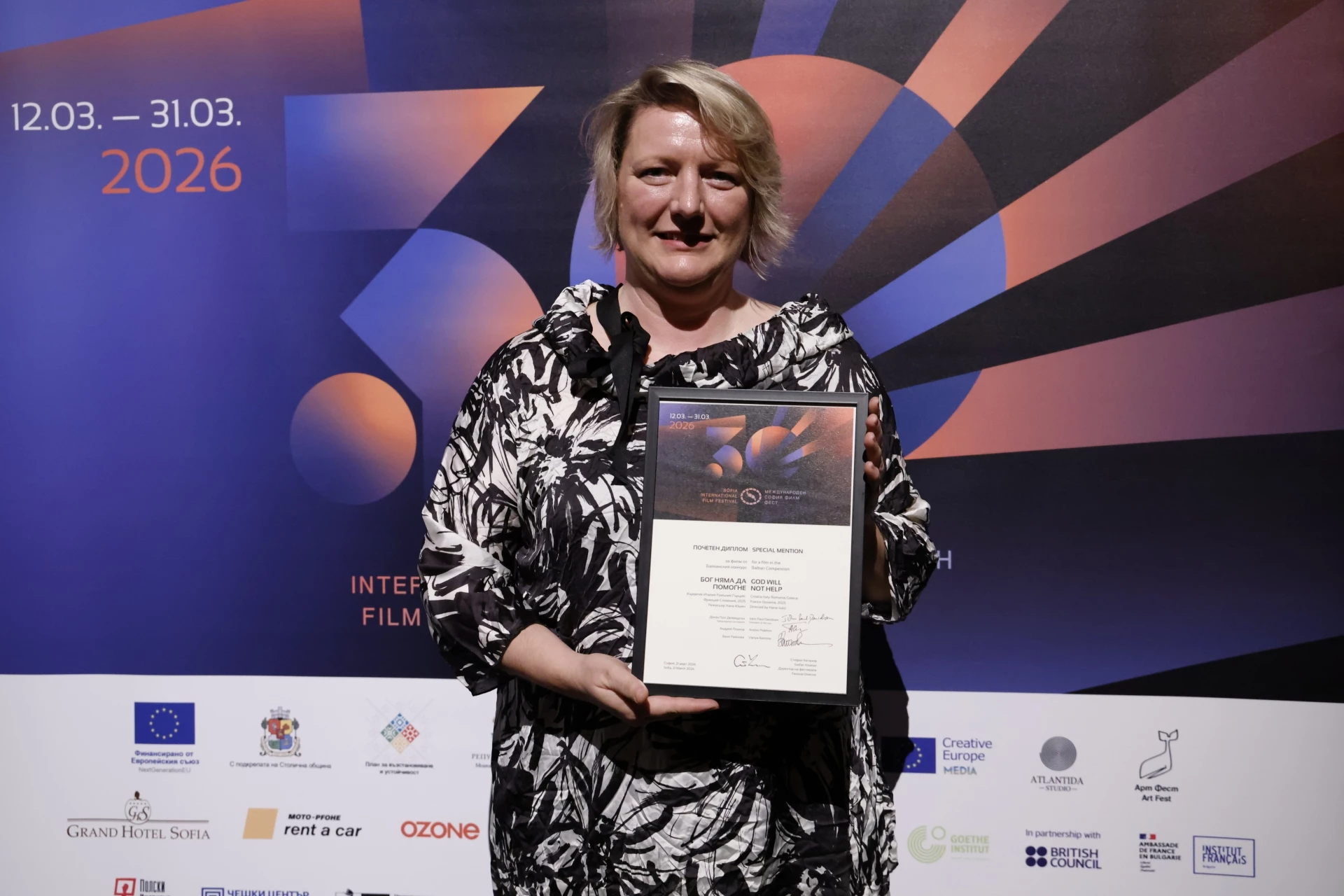 Балканското жури присъди ПОЧЕТЕН ДИПЛОМ (Special Mention) на филма "Бог няма да помогне" (Хърватия-Италия-Румъния-Гърция-Франция-Словения) на режисьорката Хана Юшич.