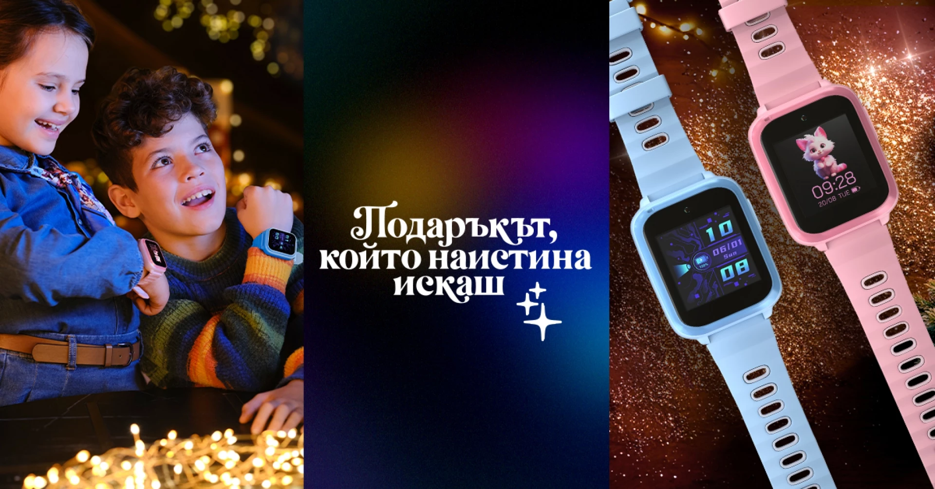 И колкото и да обичаме Коледа, си признаваме съвестно, че този празник не ни принадлежи – той е за най-малките, които я чакат с огромно нетърпение и блеснали очи, а всеки миг за тях е безкрайно специален. Затова заслужават да ги зарадваме с нещо също толкова специално. Детският смарт часовник на Vivacom е перфектният подарък – цветен, забавен и практичен. Той дава на децата свобода да откриват света, а на родителите спокойствието, че винаги могат да бъдат във връзка с тях. Офертата важи от 1.12: можете да изненадате малчуганите само за 2,00 €/24 мес.| 3,91 лв./24 мес. на специална Junior оферта на лизинг за 24 месеца с 24-месечен план Smart M до изчерпване на количествата.