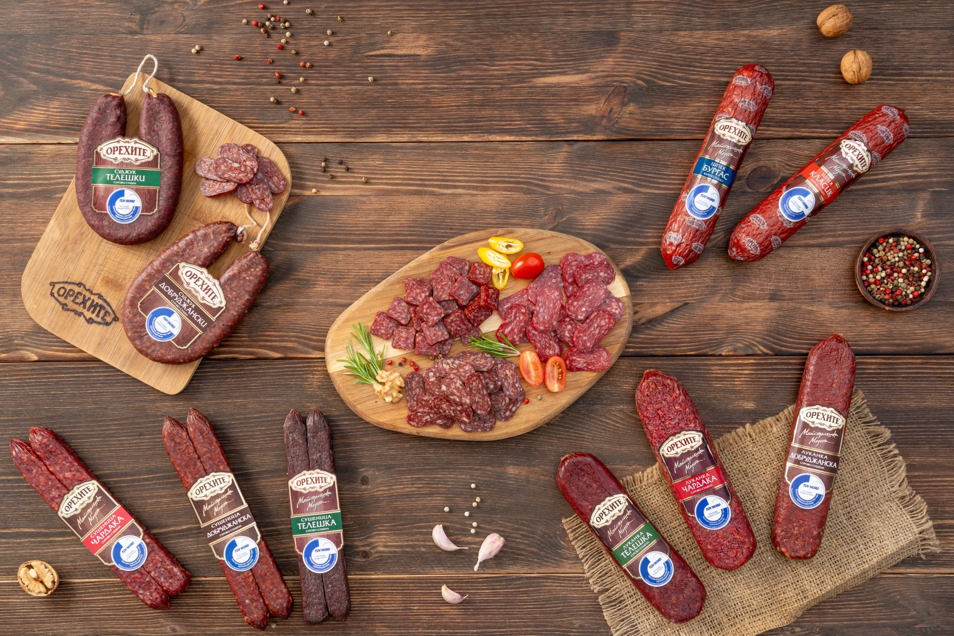 Зад всички тези любими колбаси стои една марка с дълга история и постоянен стремеж да предлагат само най-добрите продукти. “Орехите” от години изграждат доверие със своето внимание към суровините, рецептите и незабравимия вкус, който личи във всяка хапка. Неслучайно марката е първият месопреработвател и производител на колбаси в България, отличен с TÜV NORD сертификат „Контролирано качество при производителя“ – признание, което говори само по себе си. Разбира се, вкусът също е престижно оценен. “Орехите” могат да се похвалят с цели два златни медала от „Месомания 2025“ за шпеков колбас от свинско и говеждо месо и за деликатесен шпек – два варено-пушени шедьовъра, приготвени от внимателно подбрано 100% българско месо и натурални подправки, носещи духа на традицията. През последните години “Орехите” са категоричният избор на потребителите на “Месомания”, защото когато качеството и вкусът вървят ръка за ръка, няма как това да остане незабелязано.
