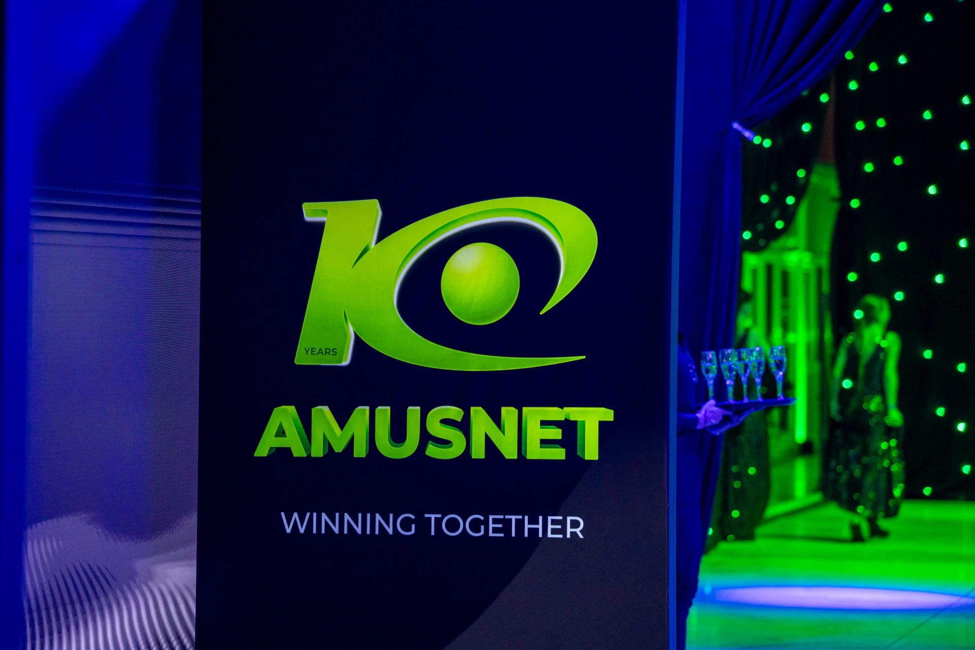 За празника една от залите в модерната производствена база на Amusnet беше преобразена в пространство за парти. Колеги и приятели на компанията се събраха, за да отбележат юбилея в атмосфера, изпълнена с енергия, впечатляващи изпълнения и много настроение. Сцената оживя със зрелищно шоу на New Circus, а DJ Doncho, DJ Dian Solo и Deep Zone Project се погрижиха музиката и доброто настроение.