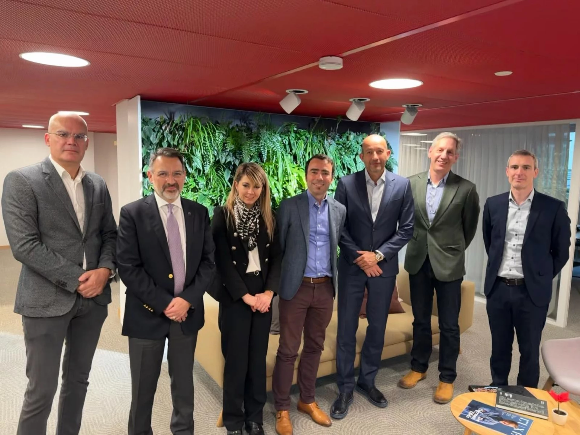 (отдясно наляво) Самюел Маршал, старши мениджър „Продажби“, GE Vernova; Карстен Бьолер, ръководител „Проектно финансиране и инфраструктура“, Швейцарска експортно-застрахователна агенция (SERV); Калин Пешов, председател на Управителния съвет на ,,Главболгарстрой Холдинг“; Марко Апалони, старши вицепрезидент „Капиталови пазари и финансови услуги“, GE Vernova; Пламена Ненкова, заместник изпълнителен директор „Международни отношения и бизнес развитие“, ,,Главболгарстрой Холдинг“; Емил Ангелов, главен изпълнителен директор на ,,Главболгарстрой Холдинг“; Андон Ичев, главен изпълнителен директор, Blue Bird Energy