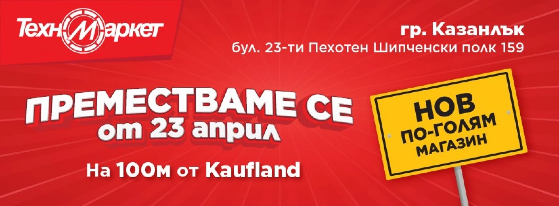 На 23 април 2026 г. Техномаркет ще отвори врати на своя нов магазин в гр. Казанлък, като част от стратегията си за развитие и по-добро обслужване на клиентите в региона.