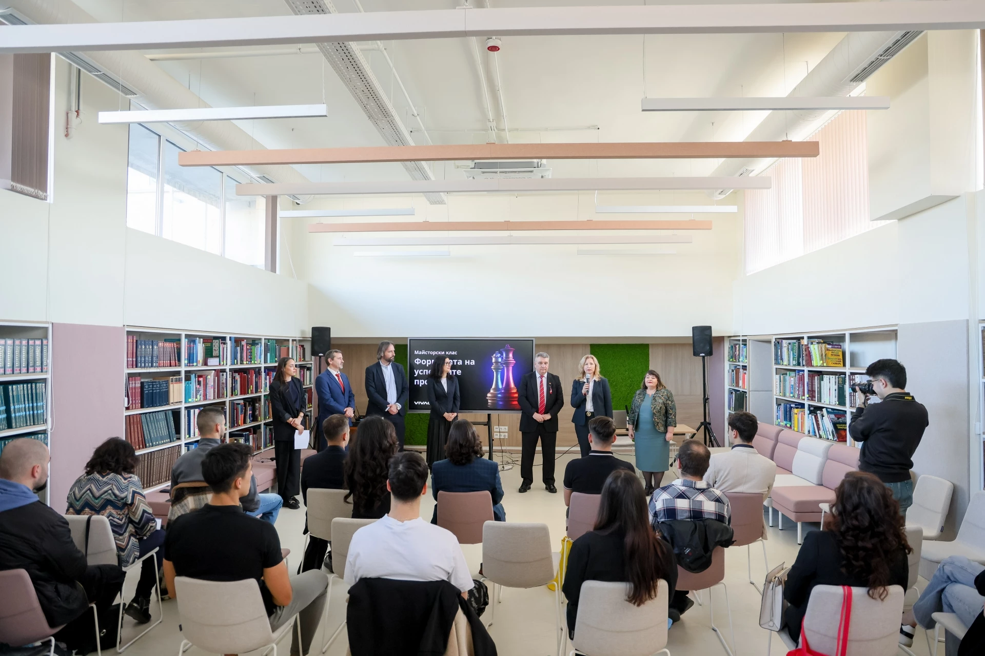 Първият ден се проведе в УНСС, в зала „Читалня“ – пространство с по-неформална и дискусионна атмосфера, което насърчи активното участие на студентите. В рамките на деня участниците работиха по теми, свързани с изграждането на успешни отношения с крайни потребители, идентифицирането на клиентски нужди и прилагането на подходи за дългосрочна лоялност. Бяха разгледани и теми, свързани с привличането на частни и бизнес клиенти и изграждането на стойностни предложения в B2B среда.