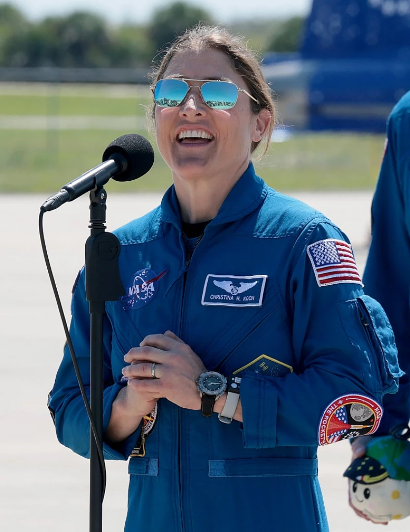 Кристина Кох е полярна изследователка и инженерка, която става астронавт през 2013 г. През 2019 г. тя служи като борден инженер в експедиции 59, 60 и 61 на МКС. Тя прекарва общо 328 последователни дни в космоса. Кох държи световния рекорд за най-дълъг непрекъснат космически полет сред жените. За нея успехът на мисията се дължи не само на четиримата членове на екипажа, но и на огромния екип зад тях. „Това е по-голямо от нашия екипаж... Ние стоим на раменете на другите. Нямаше да сме тук без нашия голям екип.“, коментира Кох. За нея е важно, че мисията "Артемида 2" символизира резултата от правилните решения, взети преди десетилетия, които позволиха на корпуса на астронавтите да събере хора с много различен произход, за да се справи с най-трудните предизвикателства.