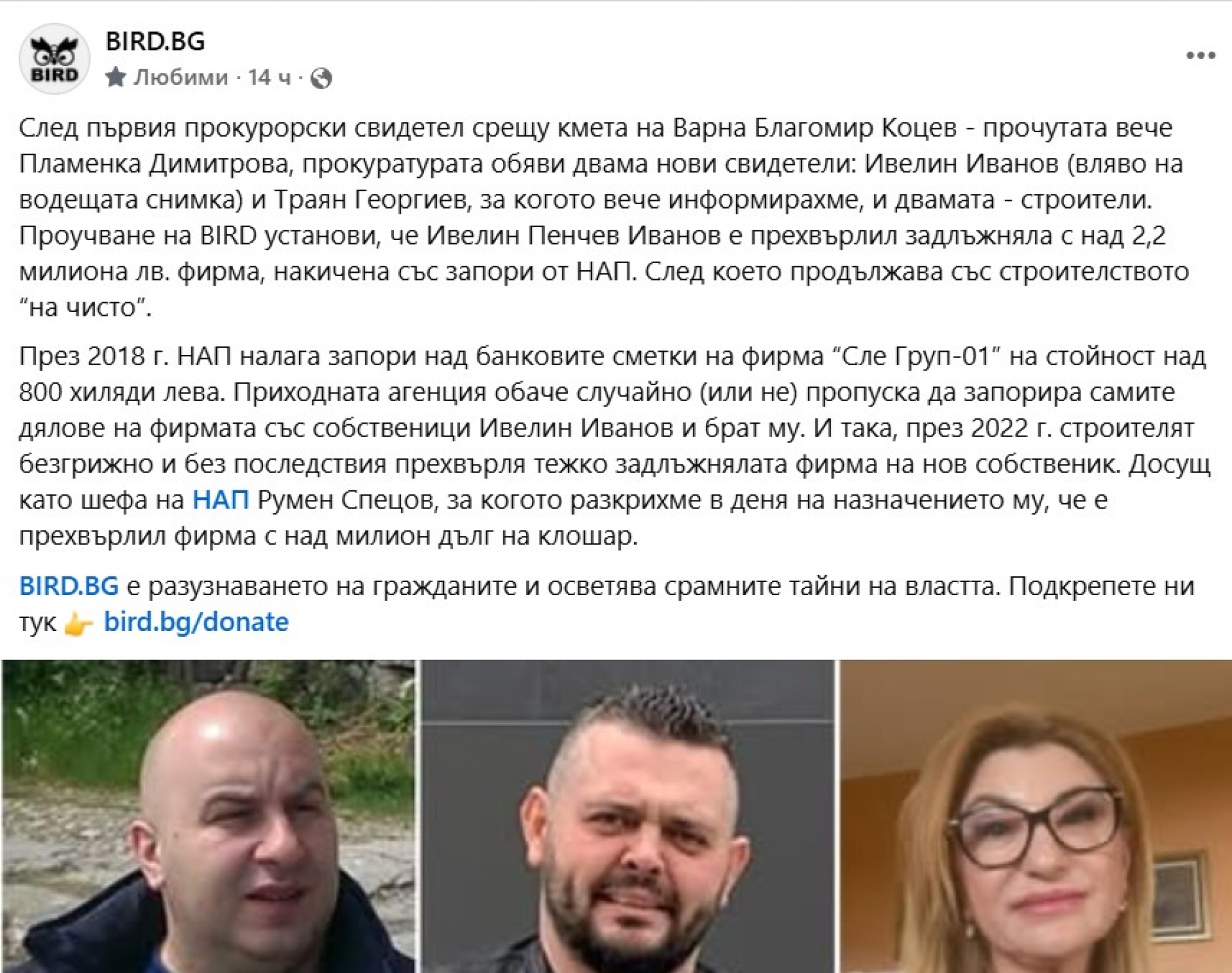 Един от двамата най-нови свидетели срещу варненския кмет Благомир Коцев – Ивелин Иванов, е продал фирма с над 2,2 милиона лева задължения към Националната агенция за приходите (НАП) през 2022 г., след като дяловете ѝ не са били запорирани. Впоследствие бизнесменът е продължил да строи „на чисто“, а конкретната компания – „Сле Груп-01“ – оперира при друг собственик, съобщи разследващата медия BIRD.bg. Actualno.com направи проверка и информацията се потвърждава.