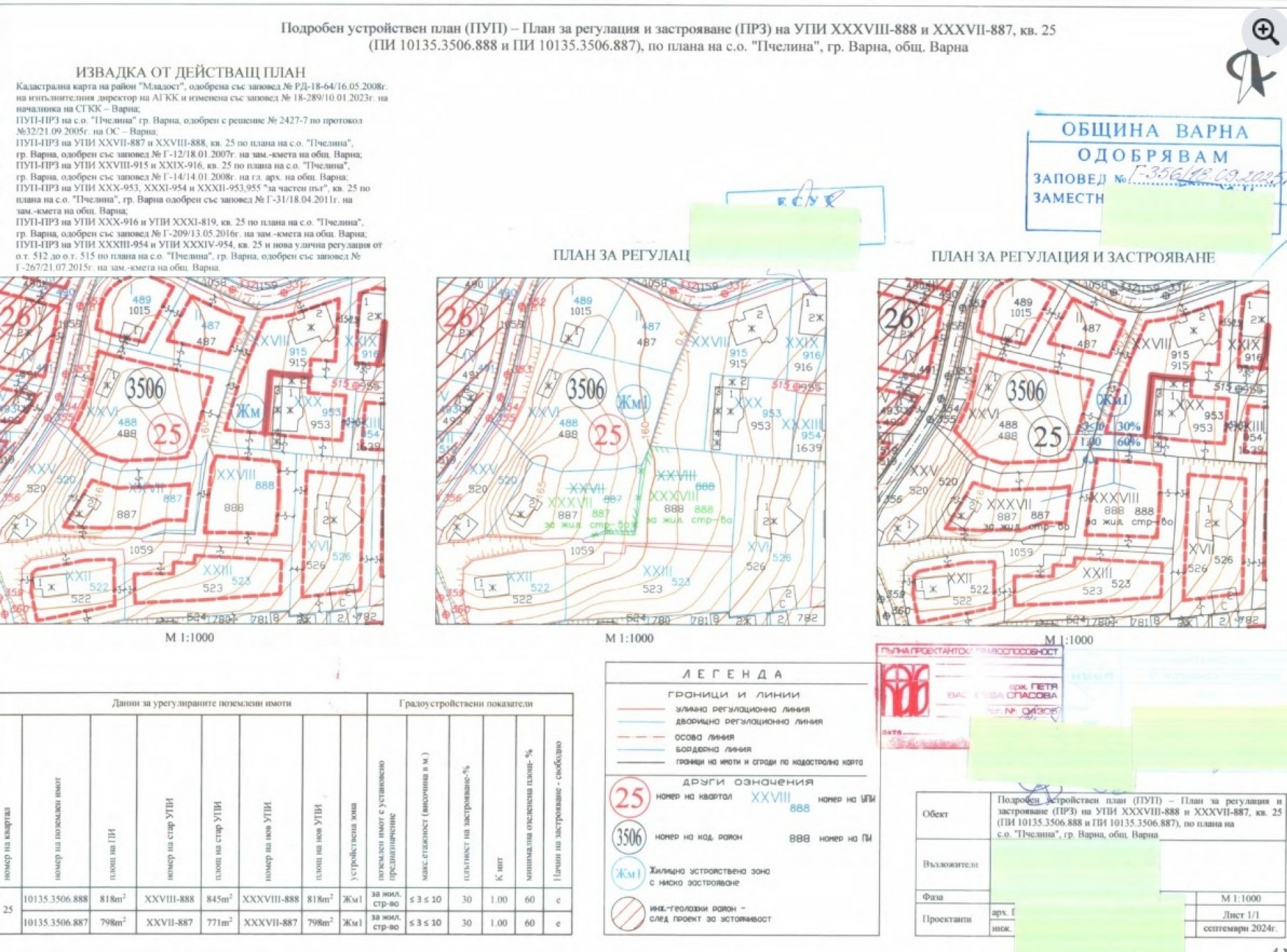 Извадка от Община Варна, направена от BIRD.bg, показва, че за два от парцелите ПУП – ПРЗ вече е одобрен. Датата е 18 септември 2025 г.