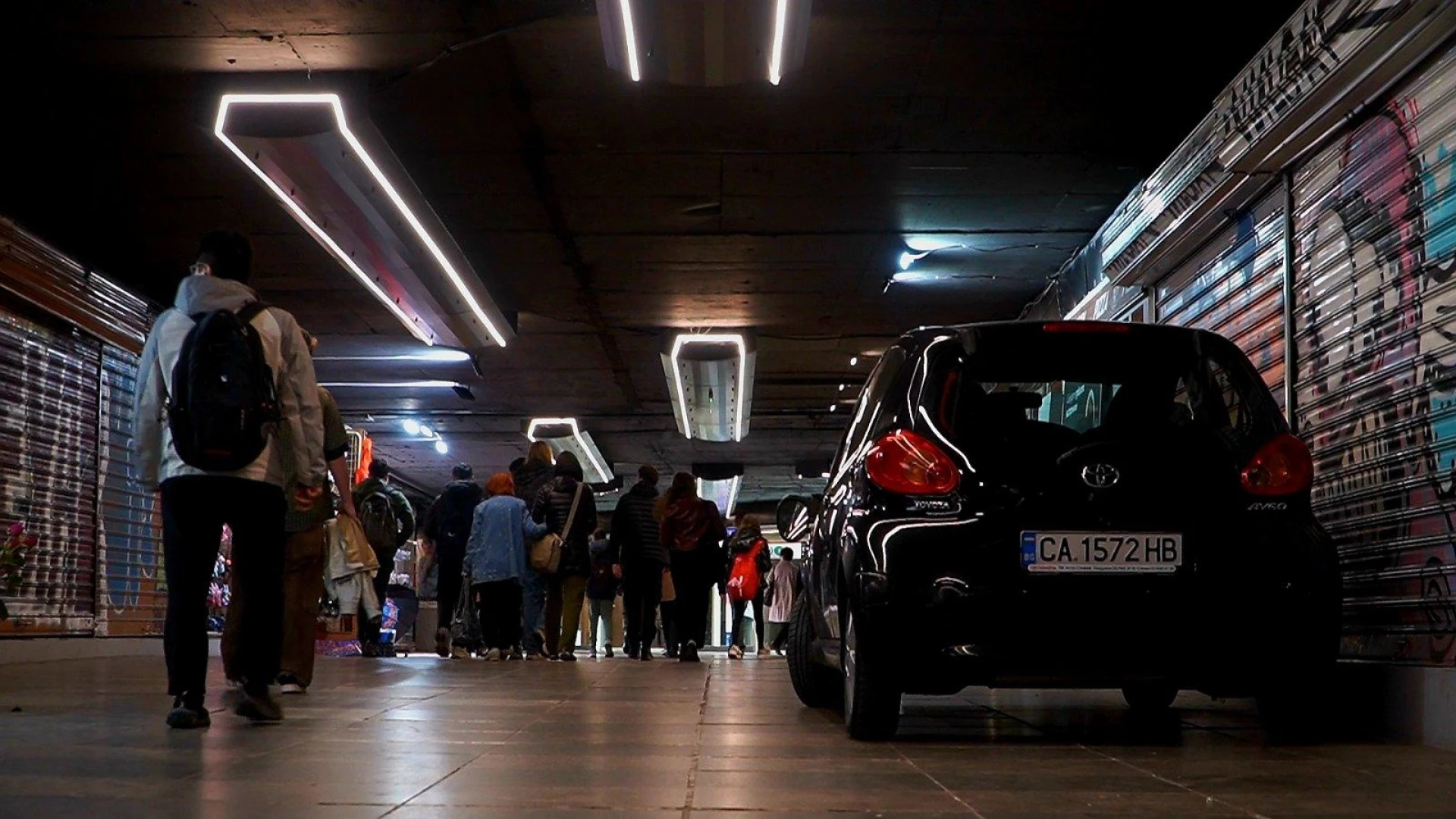Кола "паркира" в подлеза на Орлов мост. Автомобилът вероятно е бил паркиран без дръпната ръчна спирачка и е тръгнал по стълбите на подлеза. Няма данни за пострадали. На място са пристигнали екипи на полицията.