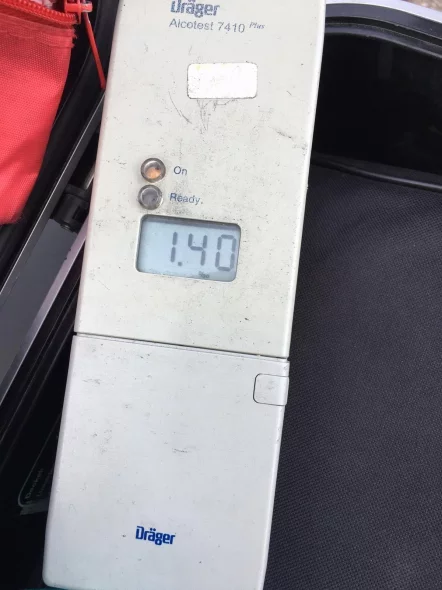 В същото време товарният автомобил потеглил с висока скорост през пътен възел “Хумни дол“, пътен възел “Марина бара“, ул. “Софийско шосе“ и отново пътен възел “Хумни дол“. Там бил спрян и задържан. Направен му е тест за алкохол и наркотици, като в издишания въздух са били отчетени 1,96 промила алкохол.