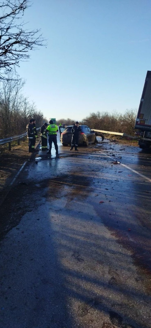 Инцидентът е станал на заледен участък. Шофьорът на тежкотоварен автомобил с влекач – 46-годишен, придвижващ се към София, е изгубил контрол над управлението. Ремаркето е навлязло в насрещната лента и челно е ударило лек автомобил.