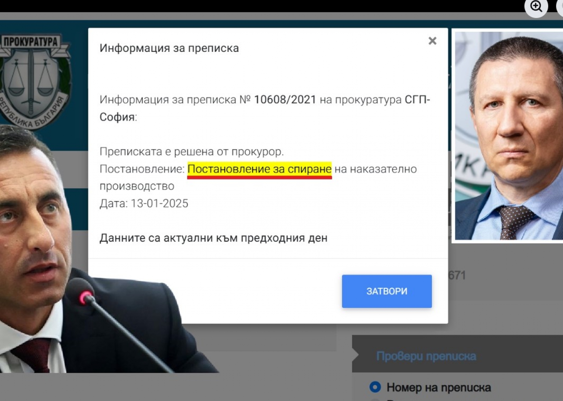 Самата преписка беше образувана през 2021 г., а в началото на миналата година тя бе решена от прокурор с постановление за спиране на наказателното производство, но не и за прекратяване.