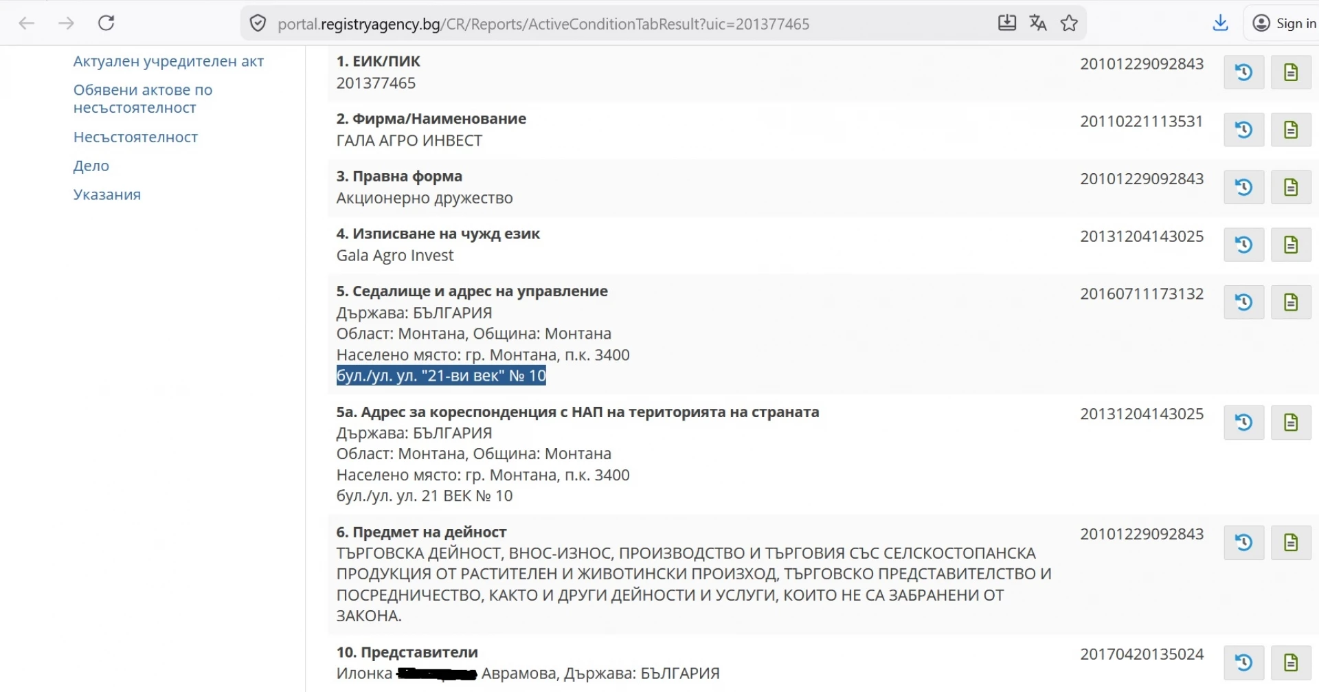 Основанието на разследващия журналистически сайт да твърди това е, че фирмата, която държи обекта, се намира на същия адрес в Монтана, където е разположена и фирма с участието на съпругата на въпросния народен представител. И двете компании имат в името си думата "Гала". Съгласно регистъра за обекти за преработка и/или дистрибуция на храни към БАБХ, фирма "Гала АМ" има няколко обекта в Монтана и всички са свързани преработка на хранителни продукти - птиче месо, колбаси, заготовки: