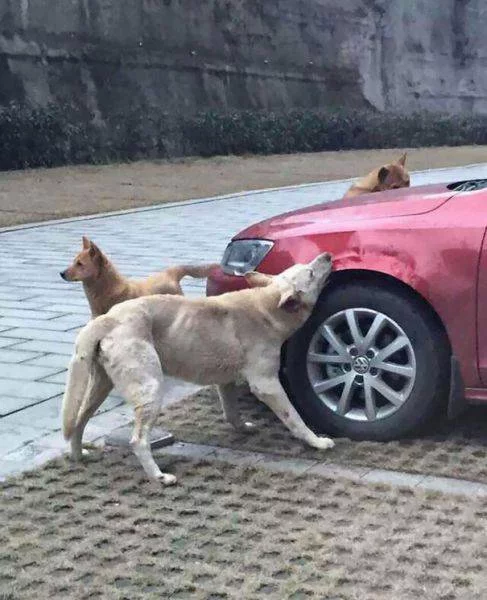Мъж от китайския град Чунцин получил, едно наистина, странно отмъщение. След като паркира автомобила си на паркинг пред дома си, той ритнал улично куче, което се навъртало около колата.