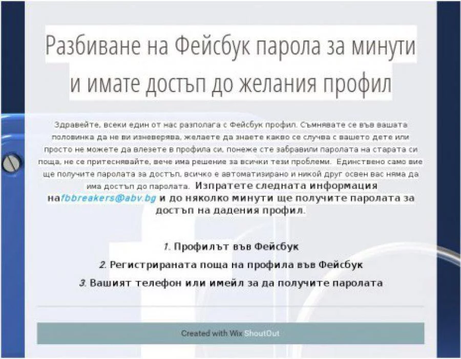 Предложение за разбиване на паролата за Фейсбук се разпространява в интернет, сигнализира читателка . Тя е получила е-мейл, който я е притеснил, пише "Петел".