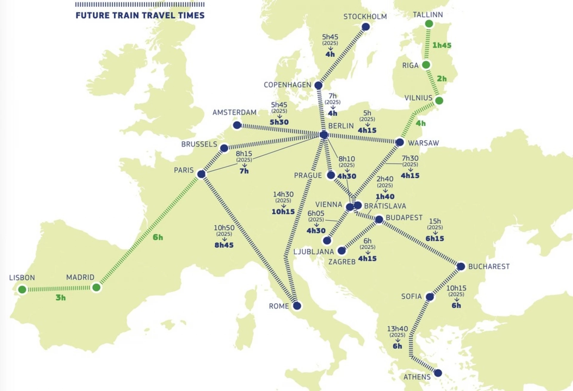 Останалите предвидени в плана високоскоростни отсечки са по линиите Будапеща-Букурещ, Берлин-Копехаген, Берлин-Прага-Виена, Париж-Мадрид-Лисабон, Мюнхен-Рим, както и между балтийските държави. Целта е при развитието на линиите да се достигат скорости на движение от поне 200 километра в час. Предложението на комисията включва също подобряване на възможностите за покупка на билети и за продажба на машини и вагони втора употреба.