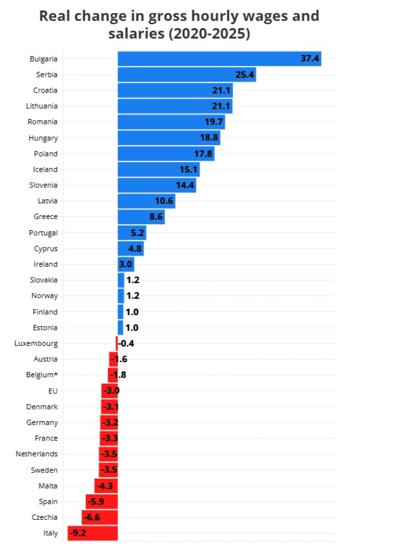 И така, как са се развивали заплатите и инфлацията през последните 5 години в цяла Европа? Кои страни са печелившите и губещите в реално изражение от 2020 г. насам?