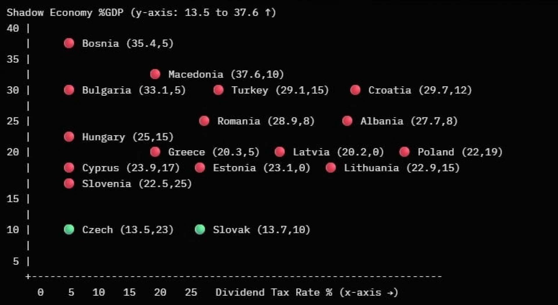 На първо място, Домусчиев посочва, че няма статистически значима корелация между данък „Дивидент“ и нивата на сива икономика в държавите от Източна Европа, които споделят сходни проблеми в борбата срещу нея и причините за пораждането ѝ. Сравненията с Франция или Германия, които Стойнев прави, за този феномен са нерелевантни. Когато БСП направят институции като френските и немските, тогава да се обадят. Тоест, казаното от депутата Стойнев е напълно невярно като данни – да не ползвам по-силна дума“, казва председателят на КРИБ.
