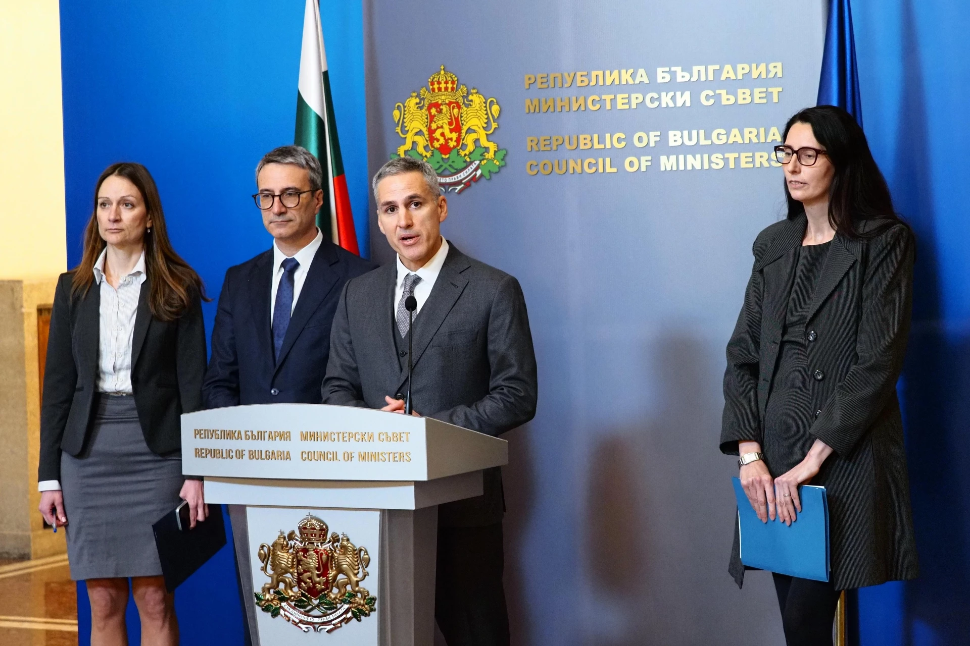 Снимка: Андрей Гюров и останалите министри след срещата днес, БГНЕС