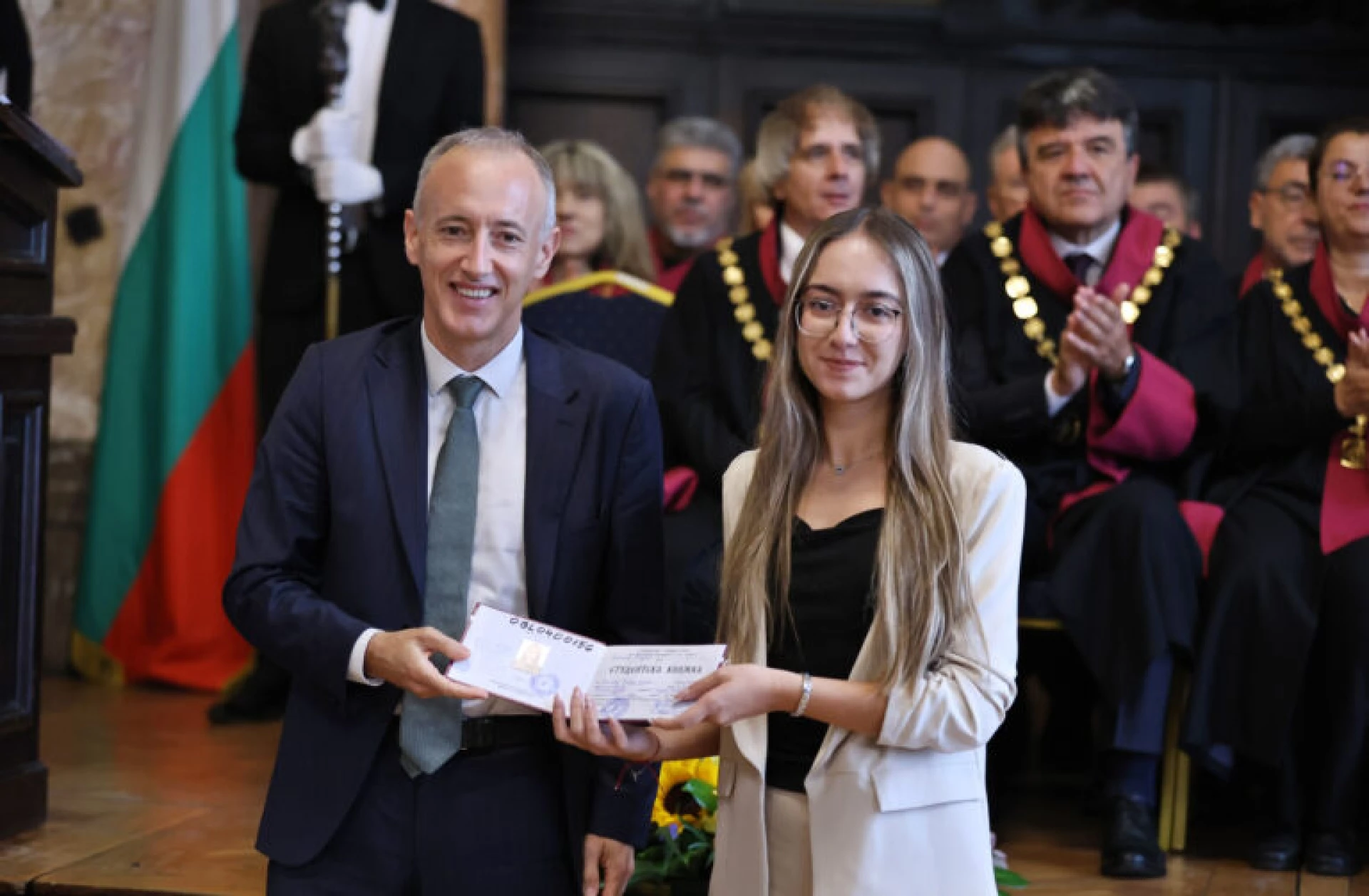 По думите му СУ е припознат като университет, който е конкурентен на висшите училища в света. "Днес светът е голям, за младите хора възможности дебнат отвсякъде и те много често се чувстват задължени да отидат някъде другаде, но са оценили репутацията, значението и възможностите, които им дава Софийският университет", каза министърът. Той връчи и студентските книжки на част от първокурсниците, носители на национални дипломи.