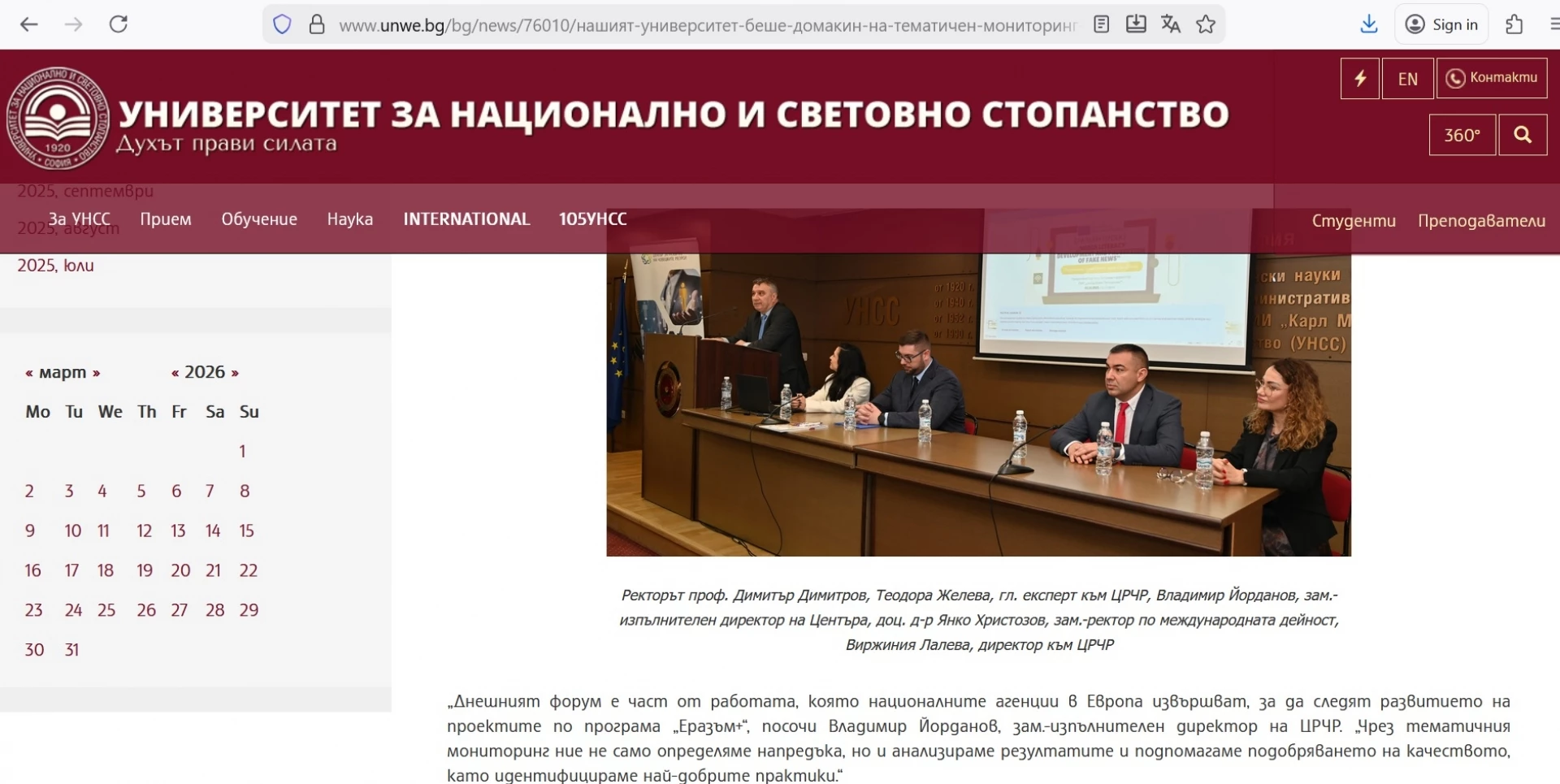 Връзката между ЦРЧР и Университета обаче също не е случайна. На 4 декември 2025 г. във висшето учебно заведение се провежда "тематичен мониторинг и среща за управление на проекти", организирани именно от Центъра за развитие на човешките ресурси, в партньорство с програма "Еразъм+" и Европейския корпус за солидарност. По време на този форум Йорданов вече е представен като зам.-директор на агенцията, четем в статия в сайта на УНСС.