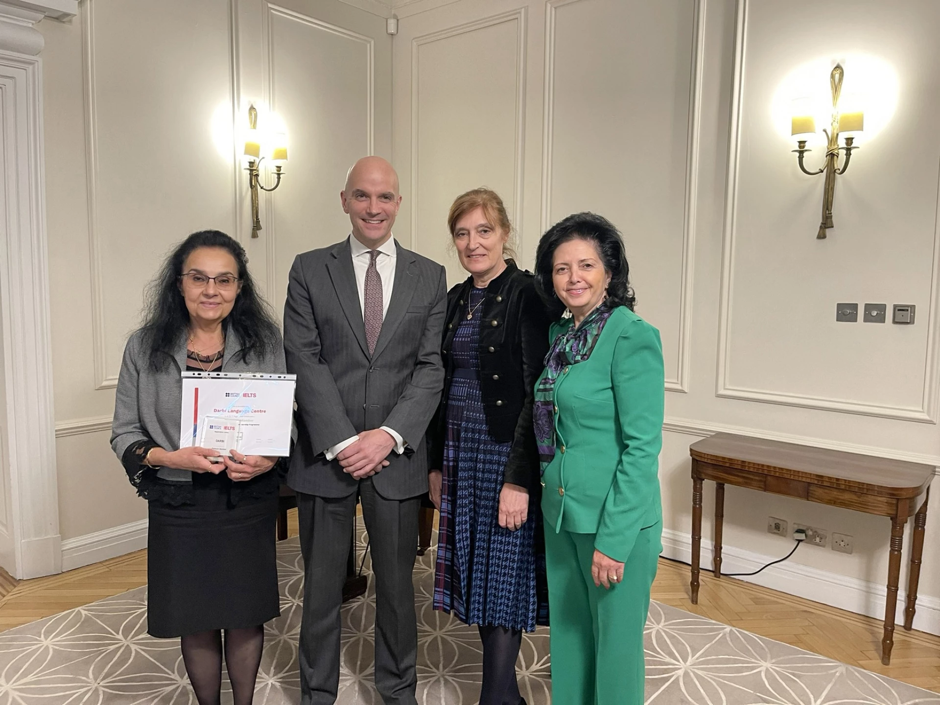 На награждаването за платинения статут от Британския съвет по IELTS партньорската програма. С Натаниъл Копси, посланик на Великобритания