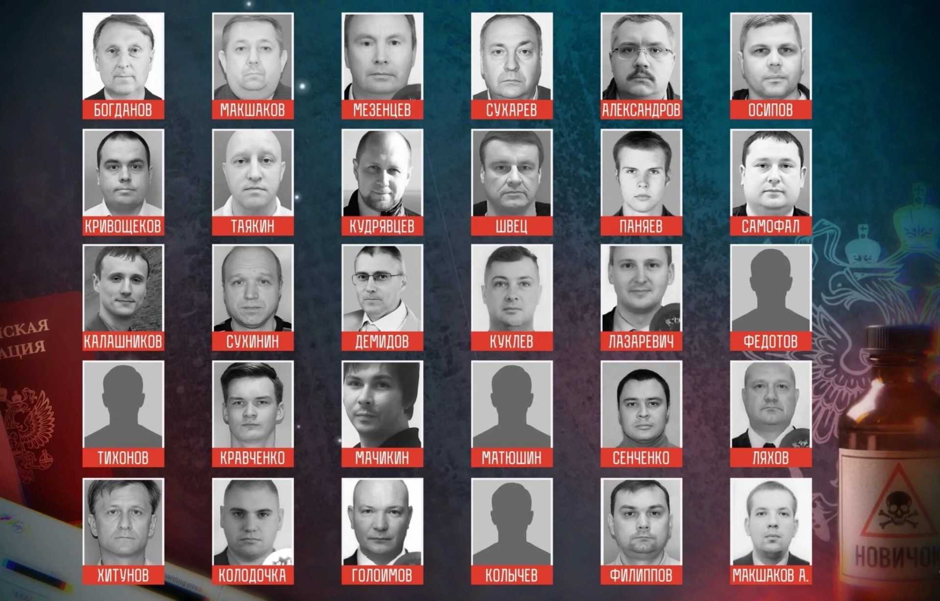 От януари 2017 г. към Филипов се присъединяват Алексей Александров, който участва в отравянето на Алексей Навални през август 2020 г. и е летял до Калининград по време на предполагаемото отравяне на Юлия Навална, Константин Кудрявцев (който в разговор с Навални по същество потвърждава опита за покушение), както и оперативните служители на Втора служба Александър Самофал и Алексей Кривошчеков, както и висши служители на ФСБ Валерий Сухарев и Роман Мезенцев.