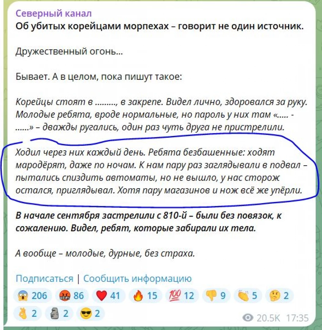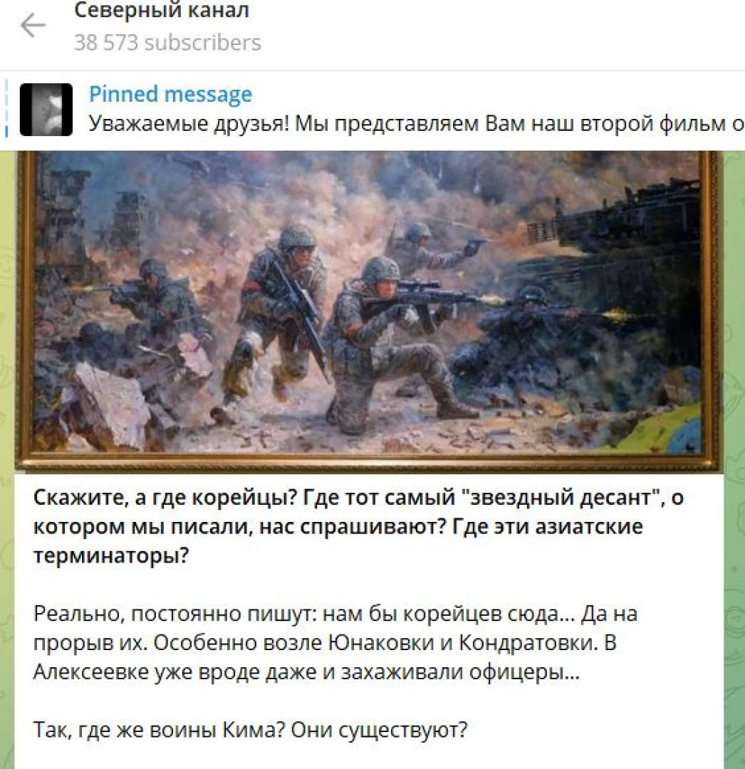 "Кажете ми, къде са корейците? Къде е този "звезден десант", за който писахме - постоянно ни питат? Къде са тези азиатски терминатори? ... Къде са воините на Ким? Съществуват ли те изобщо?", бесен е пропагандистът в телеграм канала си "Северный канал".