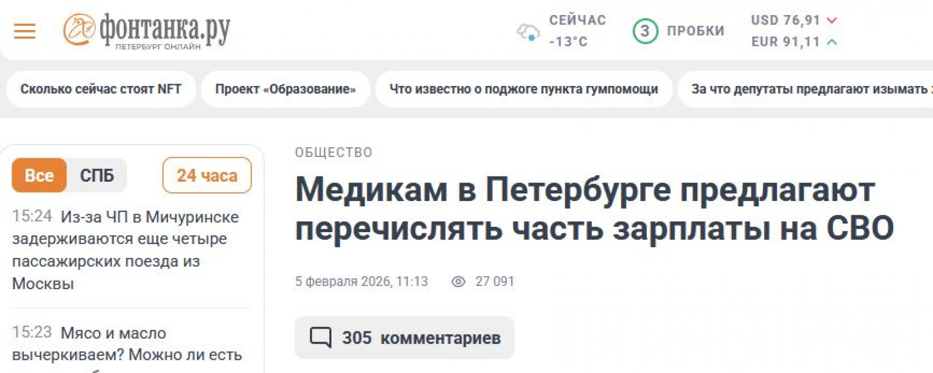 Медицинските работници в Санкт Петербург са помолени да дарят част от заплатите си за "специалната военна операция" - името, което в Русия държат да ползват и до днес за войната си срещу Украйна, в която от четири години не могат да постигнат нито една от набелязаните си цели, но пък за сметка на това платиха със стотици хиляди жертви.