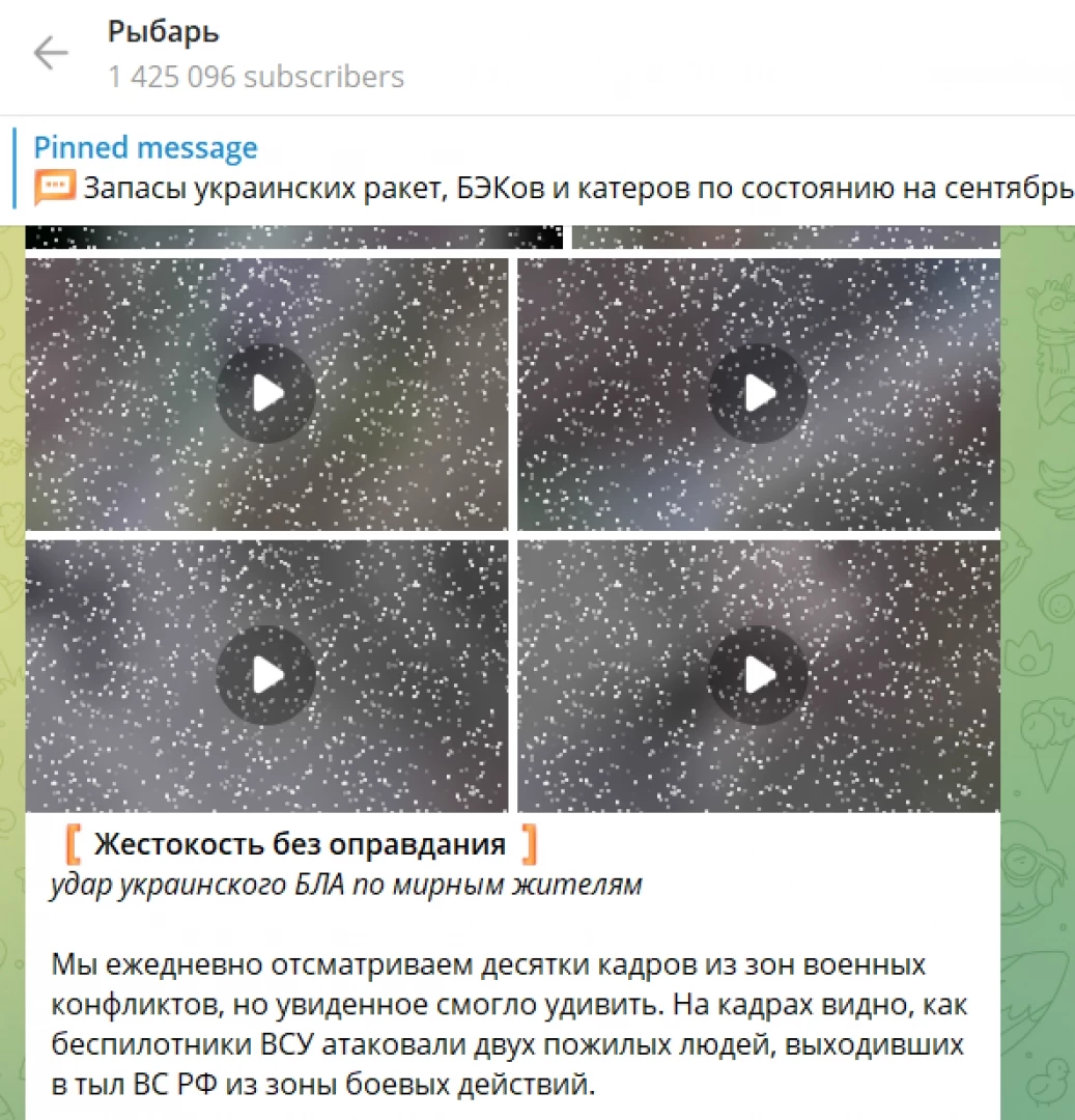 Действително, това, за което пишат украинските военни, не закъсня - видеото вече е използвано за руските пропагандни цели, например, в z-канала "Рибар", където е посочено, че атаката била извършена от украинските сили.