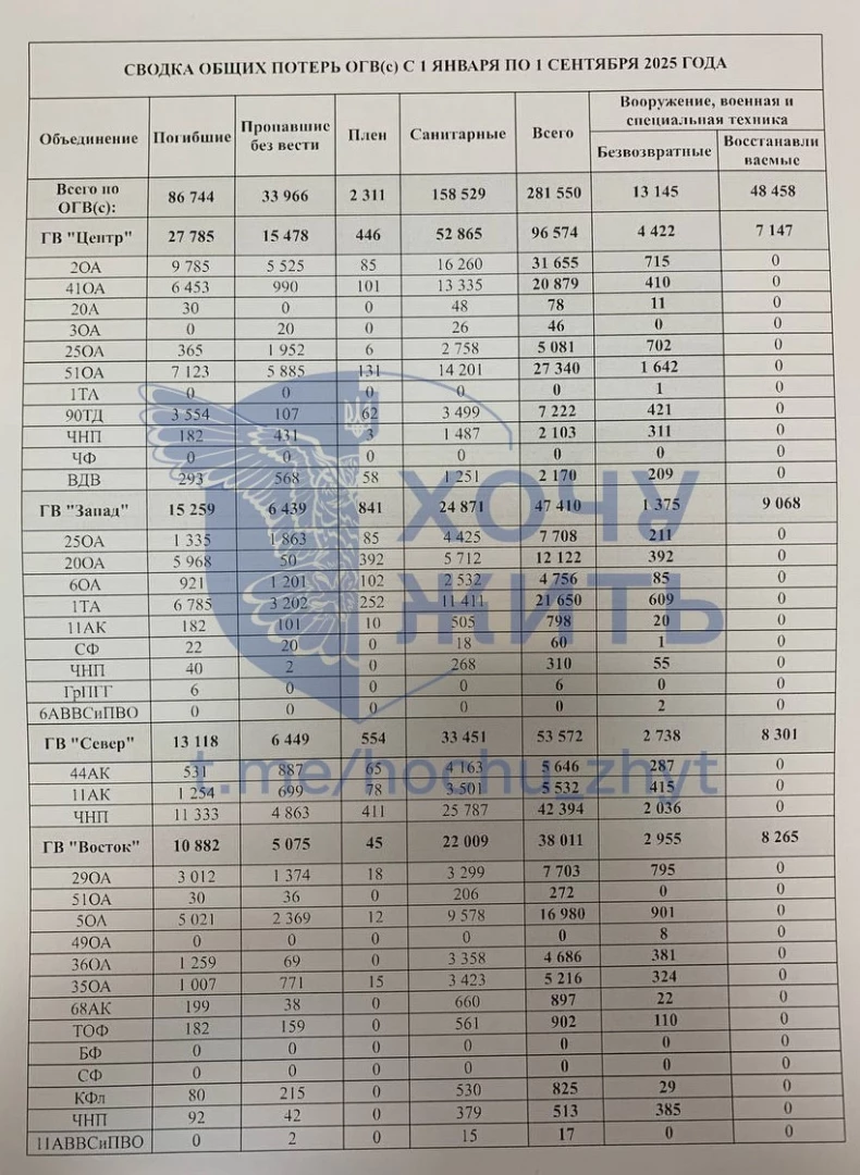 За първи път се публикува не украинска или западна, а руска статистика за руските загуби в жива сила на фронта в Украйна за настоящата 2025 година. Данните публикува в официалния си канал в Telegram проектът "Искам да живея". Припомняме, че това е държавен украински проект, създаден от Координационния щаб по въпросите на третирането на военнопленниците, със съдействието на Министерството на отбраната и военното разузнаване (ГУР) на Украйна. Неговата цел е да окаже помощ на руски военнослужещи, които искат доброволно да се предадат на украинските сили, за да запазят живота си.