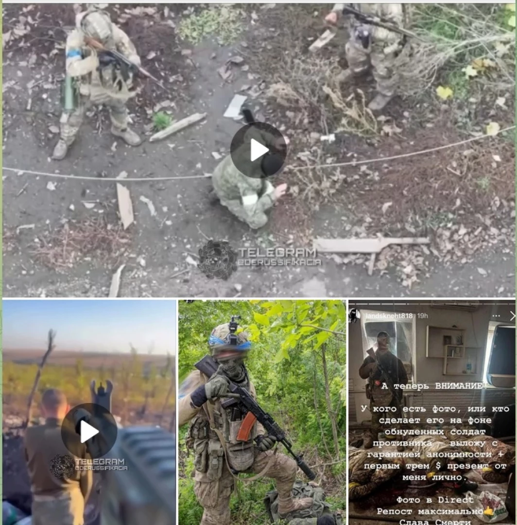 Освен това, боецът от РДК (Руски доброволчески корпус) Ландскнехт (Степан Каплунов), руски неонацист, който се бие на украинска страна от 2014 г., също публикува снимки в профила си в Instagram на предполагаемо екзекутирани руски затворници. Руската опозиционна информационна платформа SOTA, която е с етикет "чуждестранен агент" в Руската федерация, се свърза с представители на РДК, които заявиха: "Нашата официална позиция е да не пипаме затворниците. Има милиард доказателства за това.