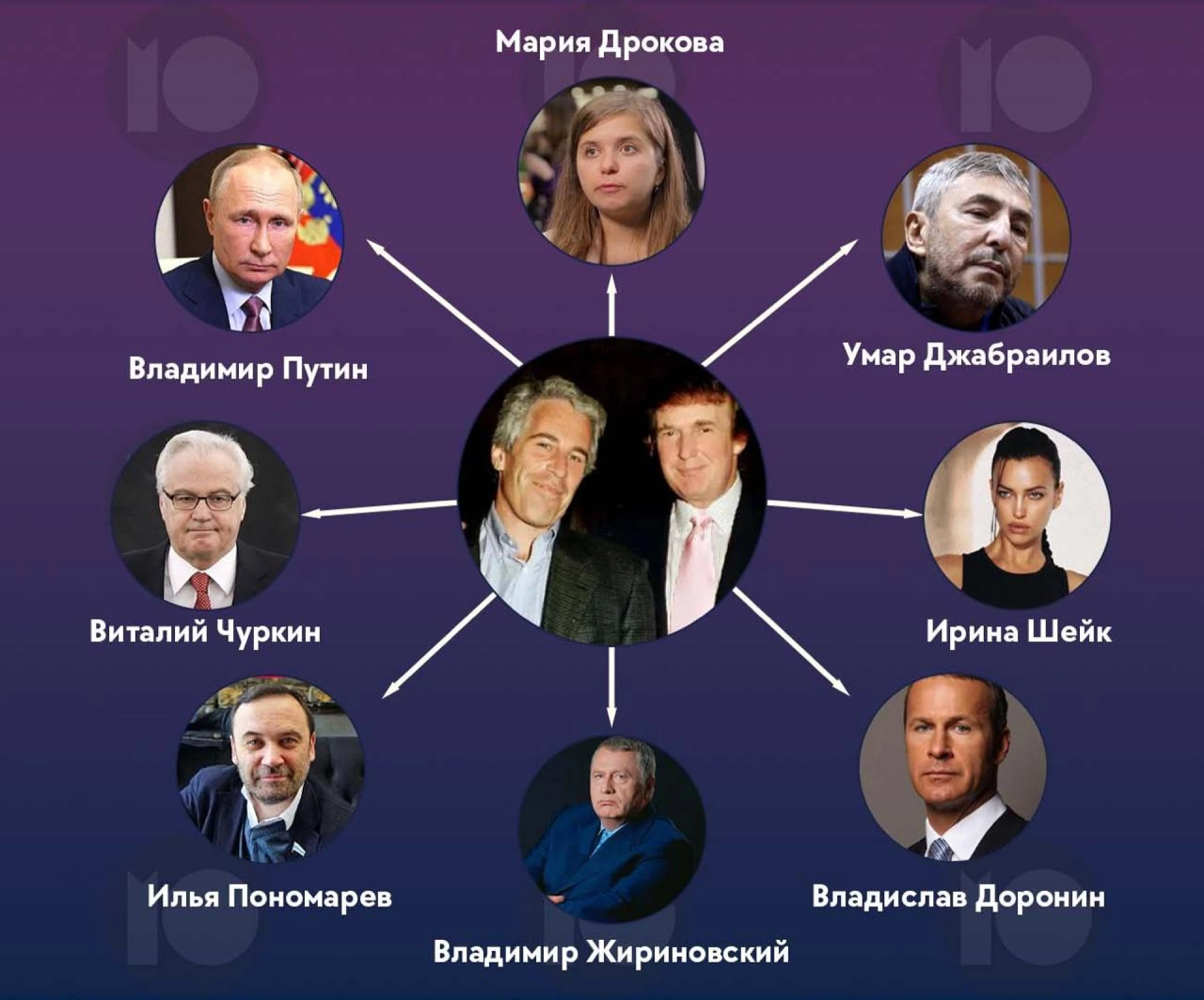 В действителност обаче в досиетата "Епстийн" могат да се намерят на много места имената на хора от най-високите ешелони на руското правителство и бизнес - например, на постоянния представител на Русия в ООН Виталий Чуркин, на основателя на Либерално-демократическата партия на Русия и заместник-председател на Държавната дума по това време Владимир Жириновский, на топмодела Ирина Шейк, с която Епстийн планирал да прекара Свети Валентин през 2014 г. и др. Името на Путин се споменава в досиетата стотици пъти, посочва "Можем объяснить". Както писахме, подозренията са, че Епстийн е бил свързан с руските специални служби.
