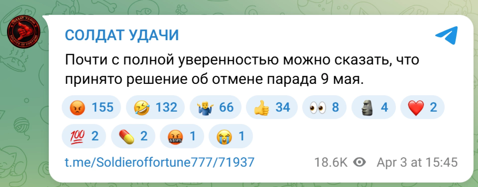 Други z-блогъри също пишат за възможна отмяна на парада - "Солдат Удачи" със 132 хиляди последователи пише следното: