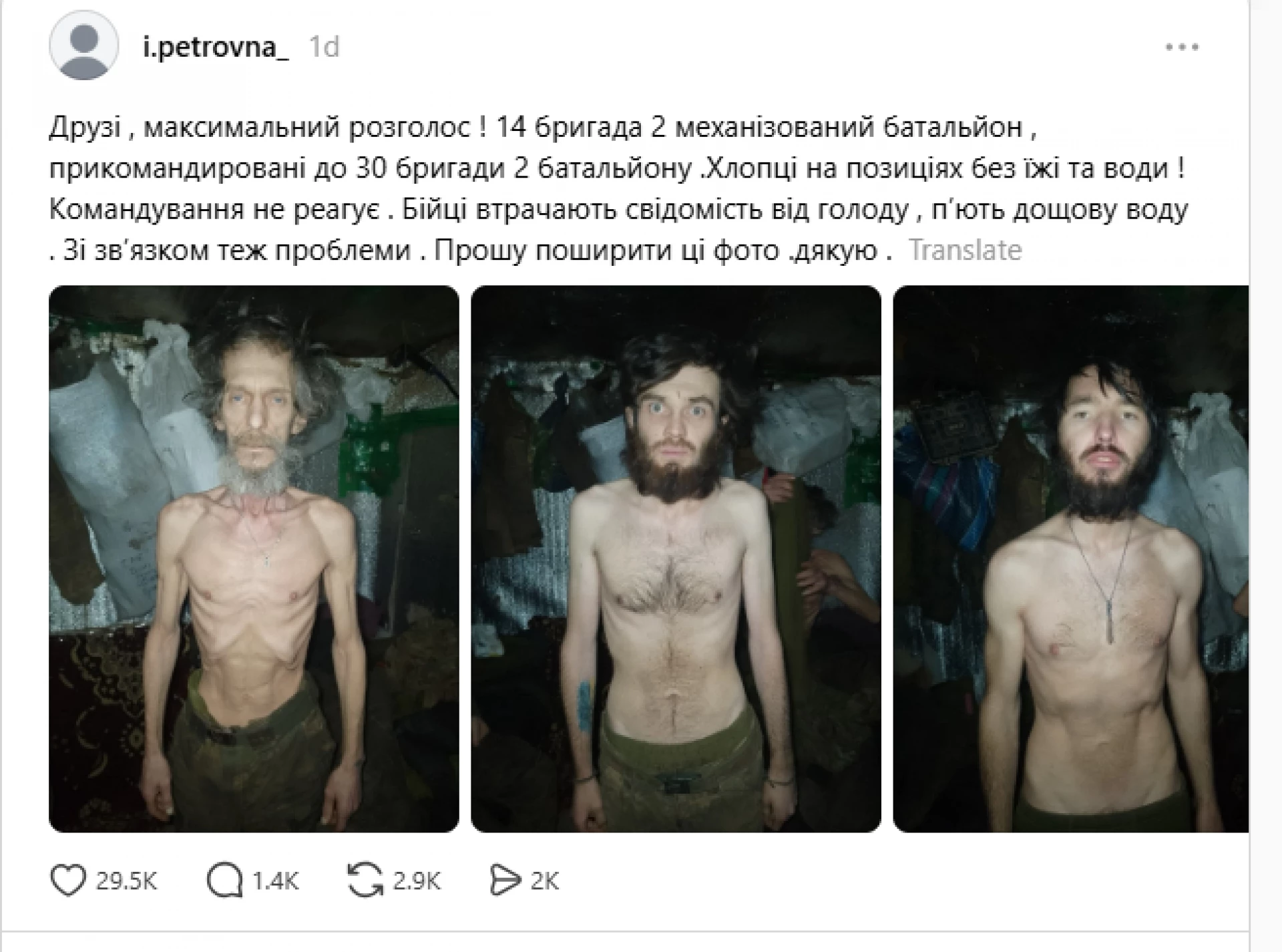 Генералният щаб на украинската армия уволни командирите на 14-та бригада и на 10-ти армейски корпус за укриване на истинската обстановка на фронта, загуба на позиции и редовен недостиг на храна и вода за войници, които изпълняват мисии в района на Купянск в Харковското направление.